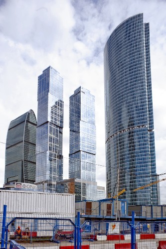 Слева-направо: Башня “Империя”; “Город Столиц” (слева: “Москва”, справа: “Санкт-Петербург”); “Башня на Набережной”