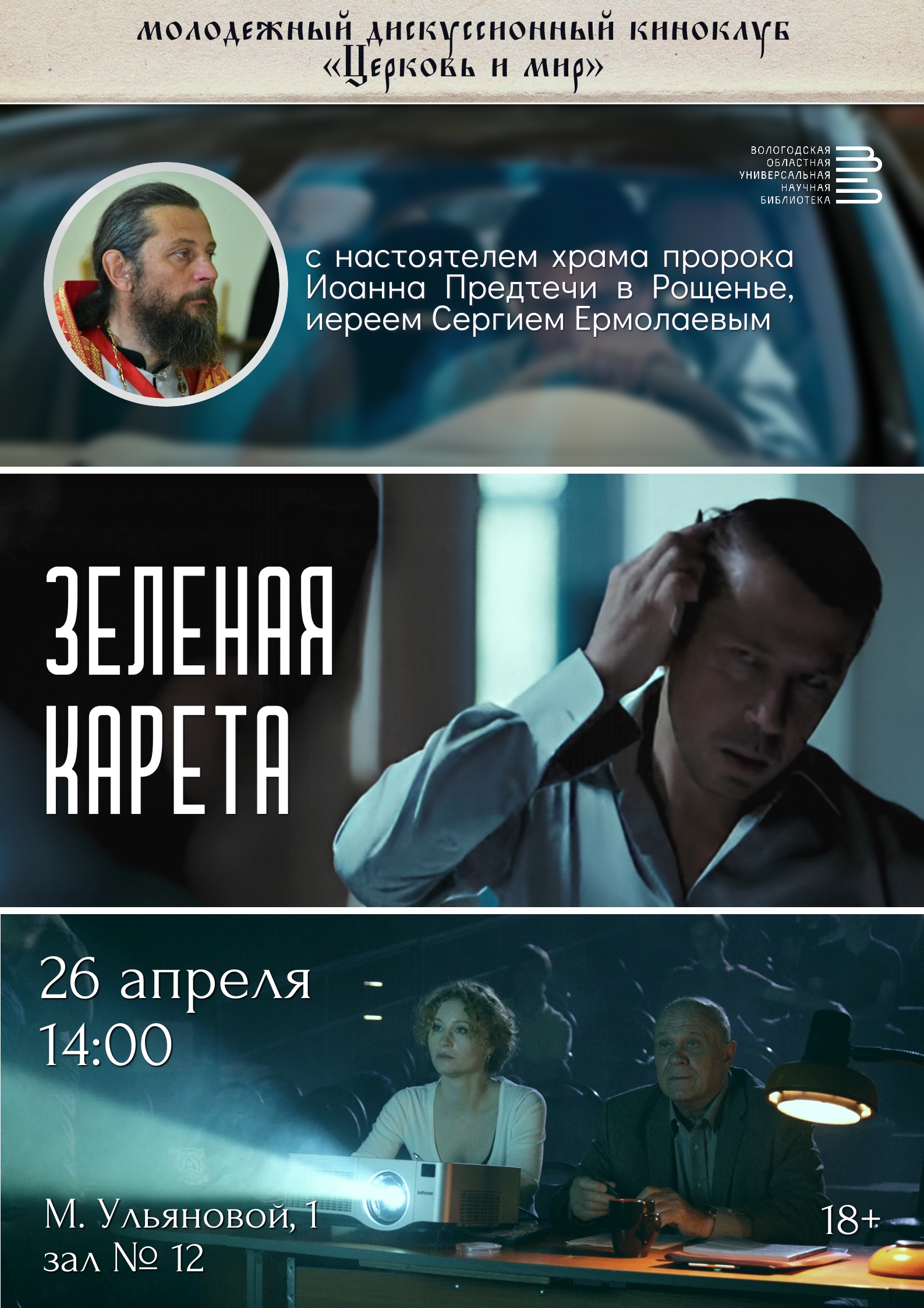 Фильм «Зеленая карета» обсудят на новой встрече киноклуба «Церковь и мир» в областной библиотеке