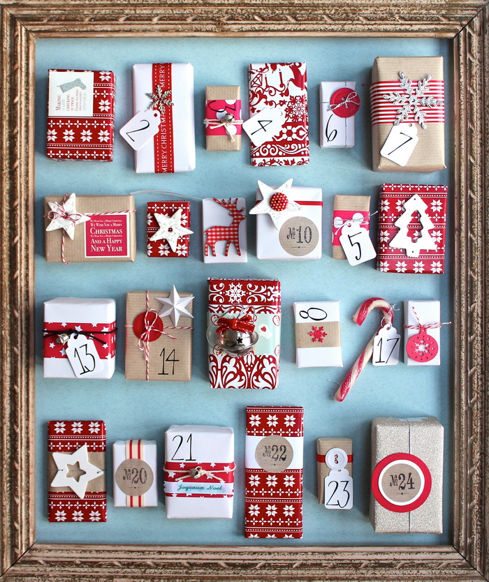 В наше время адвент-календари очень популярны. Из чего только их не делают! Из бумаги, ткани, лент и пуговиц, природных материалов, детских носочков и варежек, деревянных ящичков, ведерок и прищепок для белья и многого другого. Чем оригинальнее идея, тем интереснее! Наполнение адвент-календаря тоже дает большой простор для фантазий: это могут быть сладости, записки с пожеланиями, игрушки, маленькие книжки, наклейки, головоломки и даже карта сокровищ, по которой можно отыскать клад. Подарки в ячейках календаря ожидания можно чередовать с интересными заданиями: просмотреть новогодний мультфильм, испечь печенье, выстричь снежинки на окна, построить снежную горку или пещеру, сделать новогоднюю открытку или игрушку... Календарь ожидания необязательно делать на полный месяц, главное – создать атмосферу праздника и волшебства.