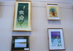 На ней представлены рисунки участников творческой группы «Акварели», которая проводит занятия при библиотеке всего полгода. Это их первая выставка, так сказать «проба кисти».
