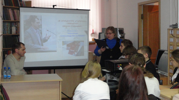 Для присутствовавших на встрече учащихся Школы юного журналиста, девятиклассников восьмой школы г. Вологды такая встреча – событие особой важности. Александр Черняткин – лауреат общероссийского конкурса «Региональные журналисты в горячих точках», лауреат премии им. Артема Боровика «Честь. Мужество. Мастерство», которая присуждается за лучшие журналистские расследования и значительный вклад в развитие независимой журналистики России. Вологодским региональным отделением ассоциации ветеранов боевых действий ОВД и войск МВД России награжден медалью «За мужество и героизм».