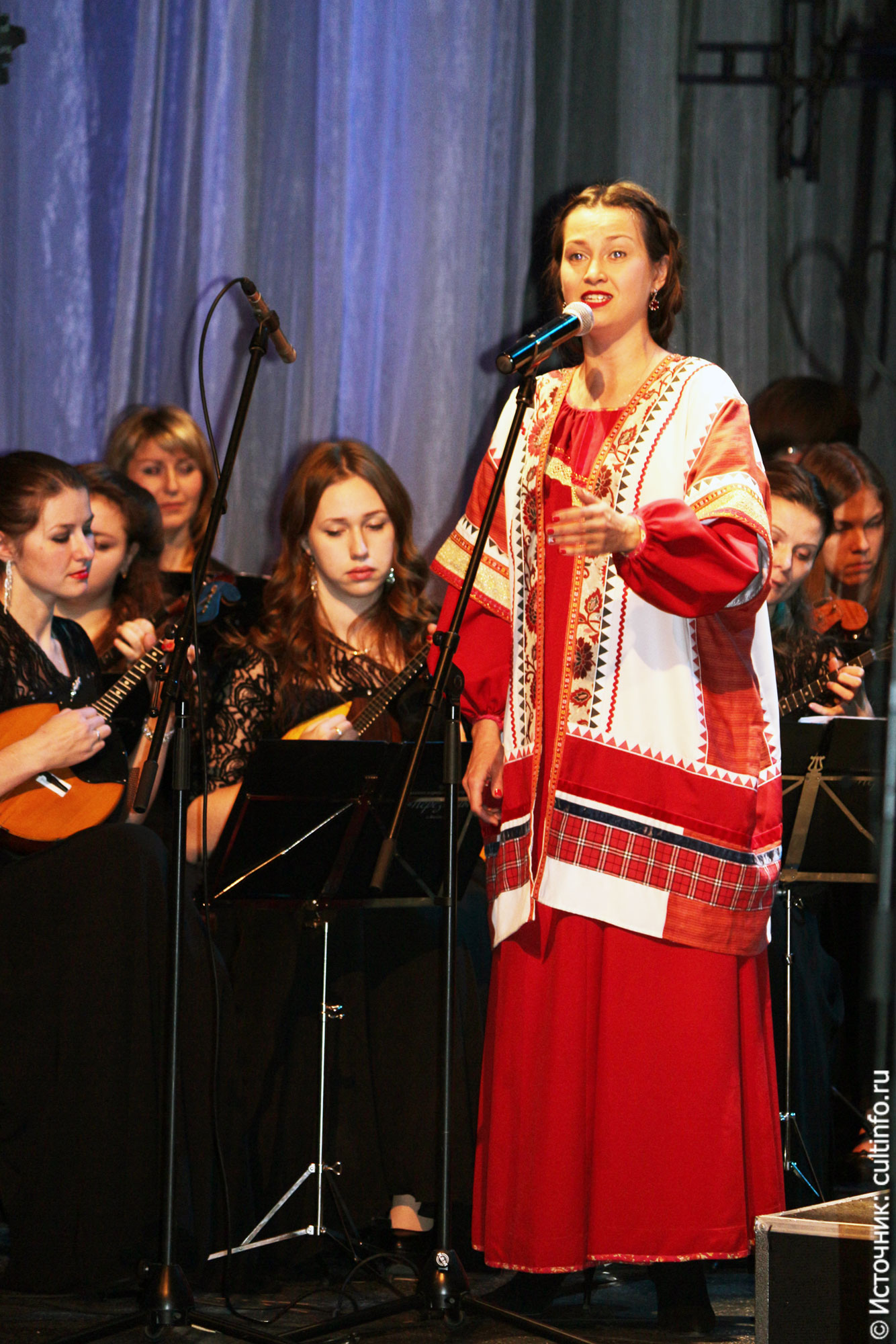 «От суеты и злобы дня / Спаси и впредь, спаси меня» – строки из беловской «Молитвы» первыми прозвучали со сцены, создав атмосферу духовности и умиротворения. Музыкальное сопровождение выступавшим артистам обеспечил оркестр русских народных инструментов «Перезвоны» (рук. А. Султаншин). Сочетание солирующей флейты с домрой, которые звучали параллельно с видеорядом незамысловатых пейзажей Русского Севера, олицетворяло спокойствие деревенской жизни.