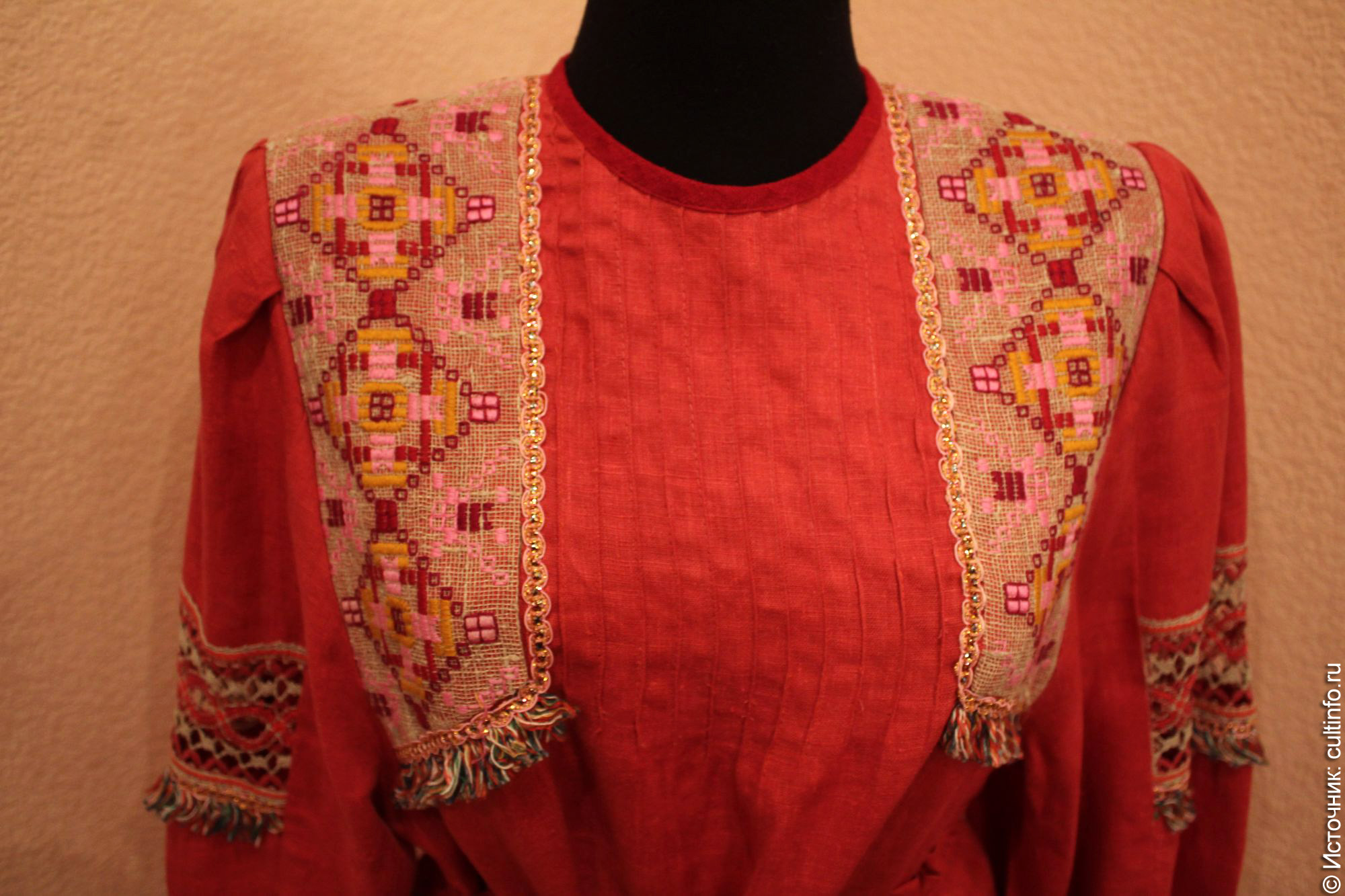 «Настоящий уголок самобытности» – так можно назвать первый этаж дома академика, где представлено более 300 произведений от мастеров со всей области. Большая часть работ выполнена в технике лоскутного шитья: одеяла, коврики, подушки, одежда, куклы. Поэтому, как отмечают организаторы, главный атрибут выставки – елку – решили украсить именно самодельными текстильными игрушками. Показана и богатая коллекция традиционных народных костюмов. По ним можно проследить географию Вологодской области, узнать, например, какая вышивка была характерна для определенной местности.