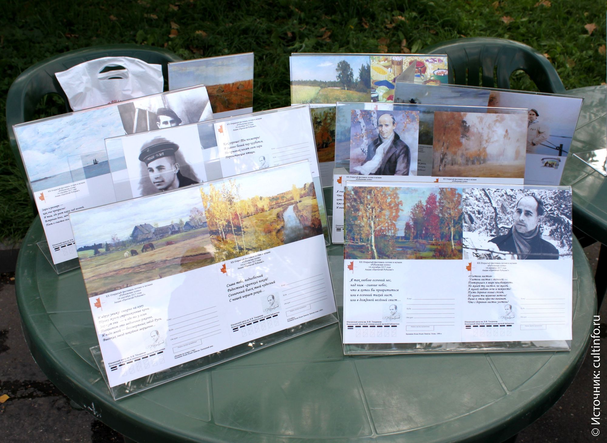 Акция «Прочитай Рубцова» организована Юношеским центром им. Тендрякова Вологодской областной библиотеки и проходит уже в четвертый раз. Число вологжан, желающих выйти к микрофону, год от года растет. Каждый раз гостей ожидает какой-то сюрприз – в этот раз организаторы предложили поэтический посткроссинг: можно было отправить по почте родным и друзьям открытку с цитатой из стихотворения Рубцова. Открытки были выпущены специально к акции тиражом 200 экземпляров.
