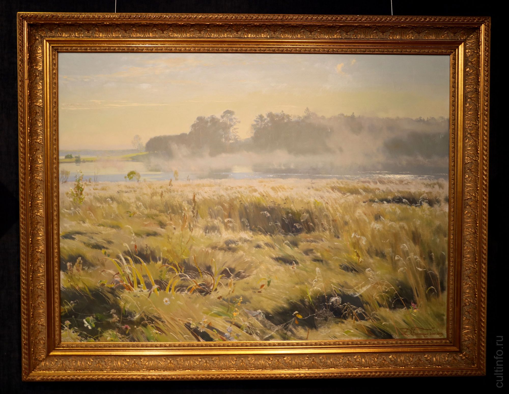 На картине «Озеро Маленец ранним утром» запечатлена «расслабленная», пробуждающаяся природа, и над озером завис туман. Тонкое «призрачное» состояние подчеркивают невесомые сеточки паутин на слегка колышущейся траве.