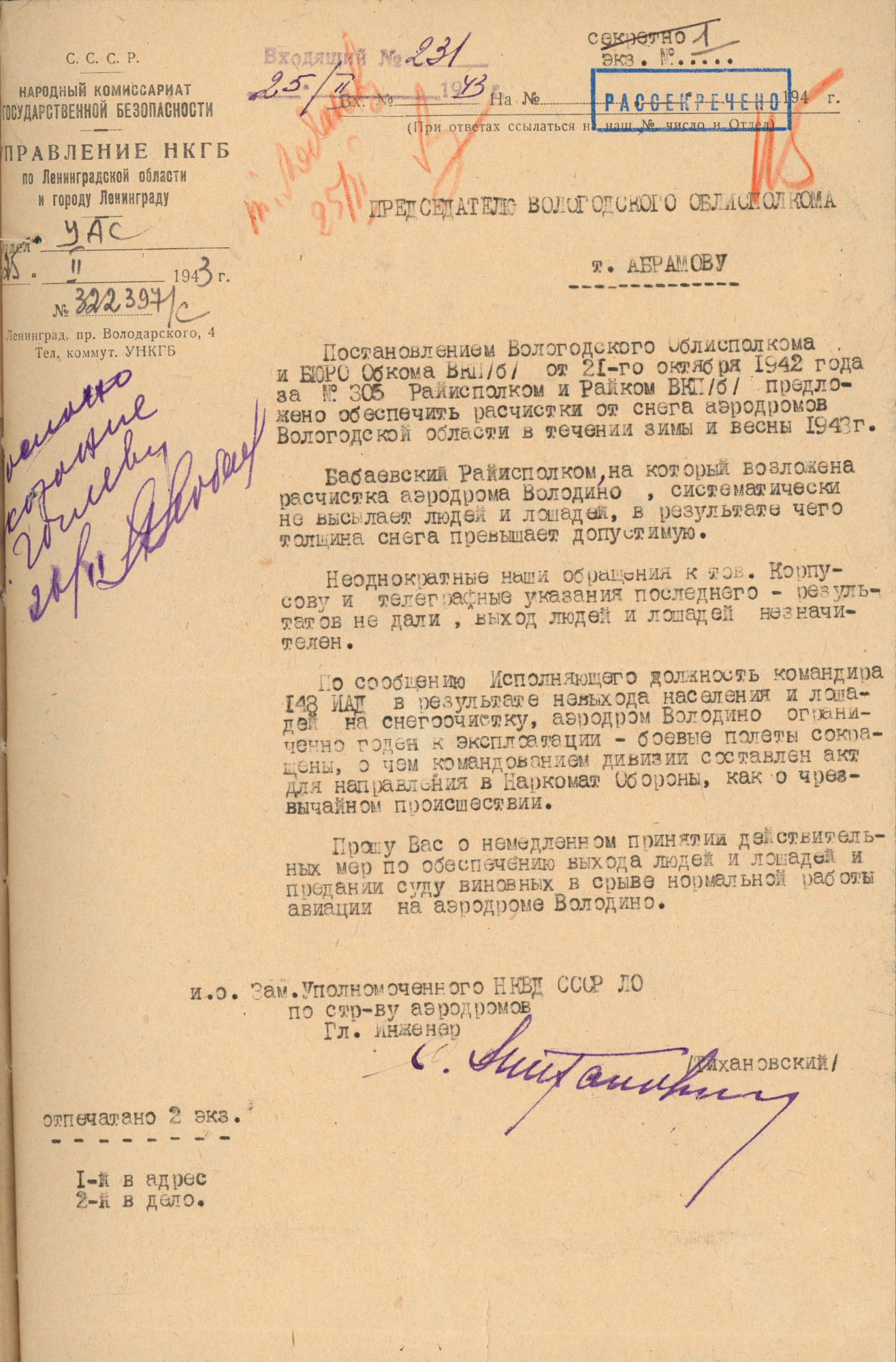 Документы десятки лет значились под грифом «совершенно секретно» и ранее не публиковались, несмотря на то, что были переданы на открытое хранение в 2018 году в Государственный архив Вологодской области. В их перечне – «Постановление о создании аэродромной сети», переписки о поставках строительных материалов и отчеты о ходе работ.