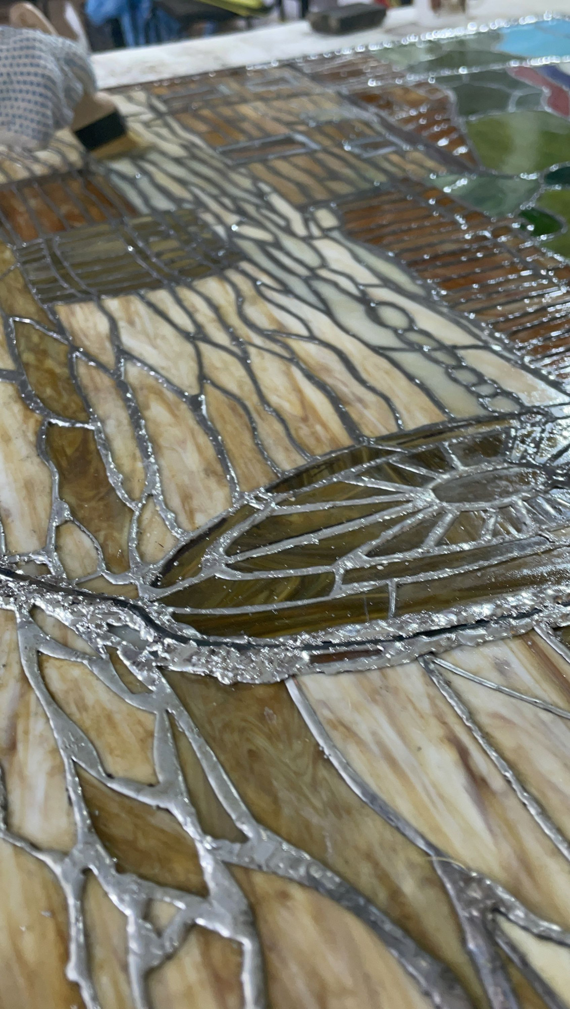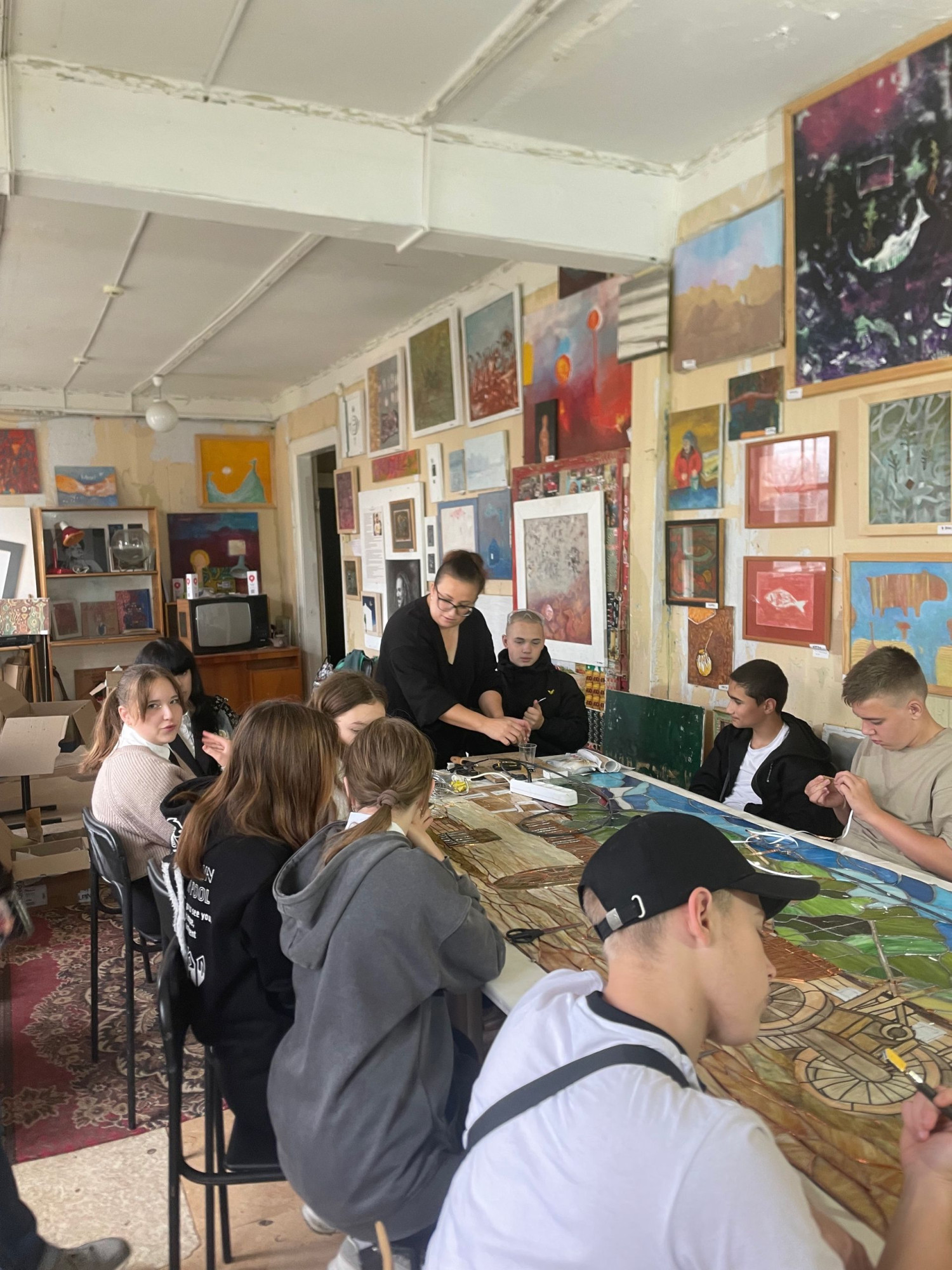 Мастерскую в Тотьме создали на базе общественного пространства «Городской сад», а для работы над витражом набрали более 50 волонтеров из Тотьмы и других городов, в том числе ребят с ОВЗ. Для них организовали занятия по изготовлению витражей. Кураторами мастерской выступили сотрудники Тотемского музейного объединения Светлана Немирова и Вера Галушкина. Мастер-класс для волонтеров провел руководитель проекта «Рубежи России», глава ремесленной мастерской «Верес» из Ивангорода Виктор Федосеев. Он же помог с финальными работами над витражом и его установкой.
