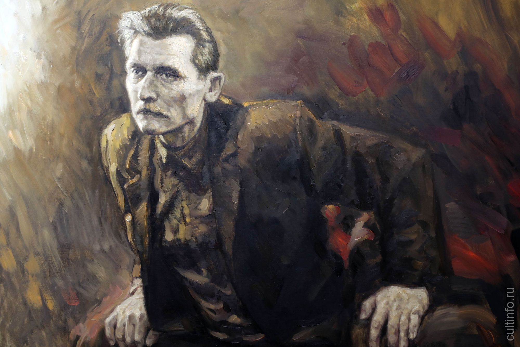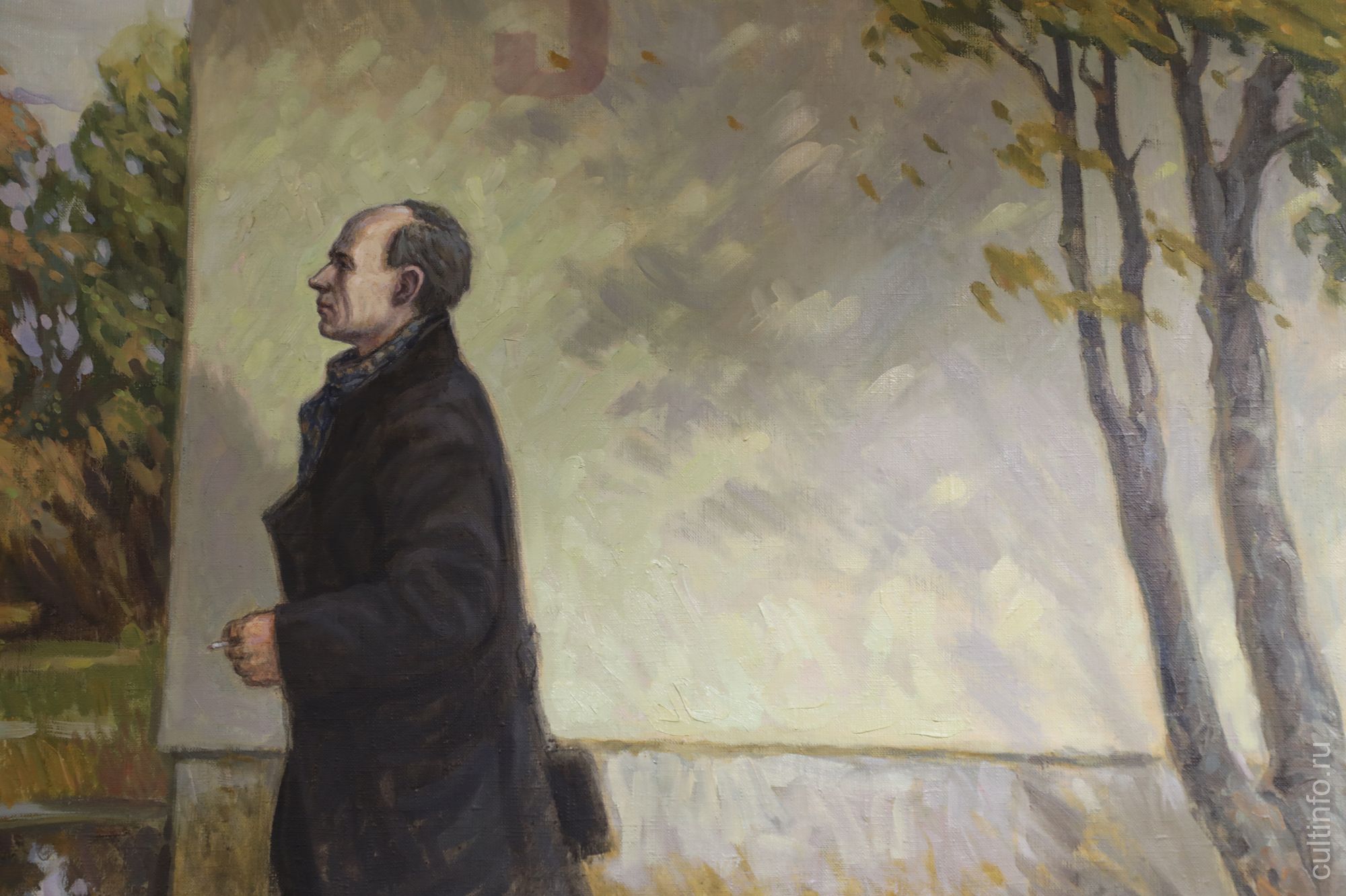 Но не только жанр пейзажа показан на выставке. На втором этаже расположилась поэтическая портретная галерея вологодских классиков. Здесь Николай Рубцов спешит к речному вокзалу; Александр Яшин поднимается, влекомый делами; глядит на зрителя Варлам Шаламов с осеннего поля. Представлены и деревенские натюрморты.