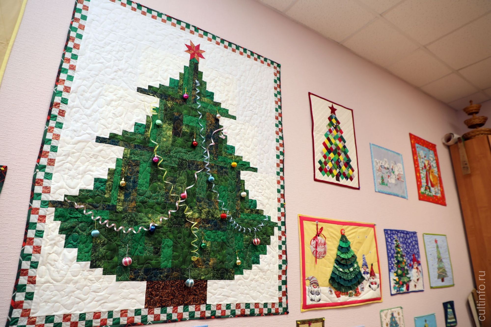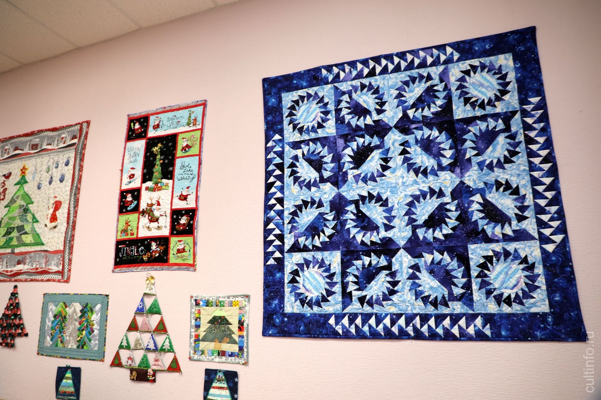 Изделия на тему новогодней елочки и зимних праздников создали мастерицы клуба «Горница» под руководством Надежды Калугиной. Объединение существует при центре «Забота» больше 10 лет. Участниками его становятся те, кто прошел трехлетний курс обучения лоскутному шитью у Надежды Валентиновны. Выпускница Московской государственной академии физической культуры, она неожиданно для себя стала заниматься рукоделием в стиле пэчворк, а в 2013 году начала преподавать лоскутную технику.