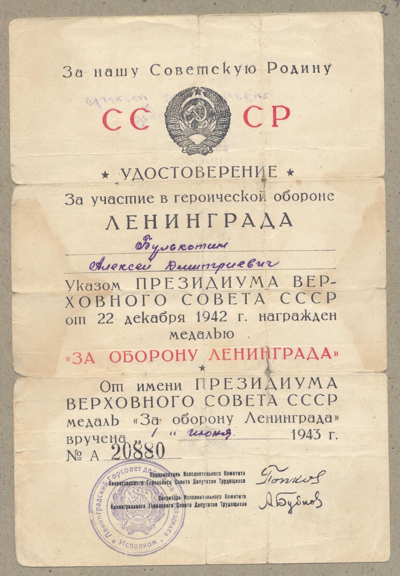 В Муниципальном архиве города Вологды находятся на хранении личные документы Алексея Дмитриевича Булькотина (28.05.1913 – 20.01.1997), участника Второй мировой войны (1939-1945).