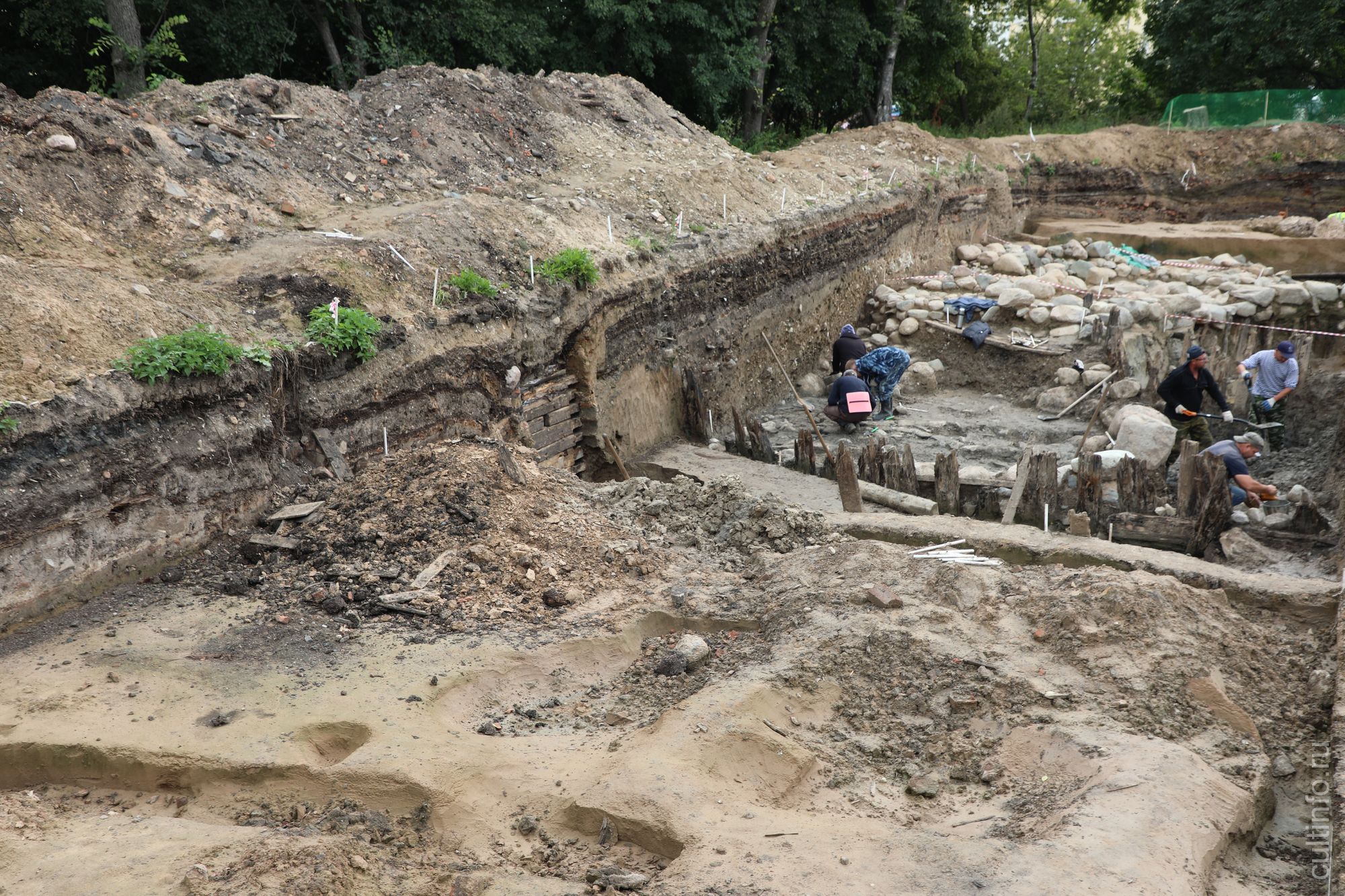 «Благодаря раскопкам мы можем проследить технологию инженерного дела XVI века. Основой фундамента были вертикально забитые вплотную друг к другу трехметровые сваи. Свайное поле располагалось ниже уровня промерзания. Необходимо учитывать, что тогда зимы были холоднее – шел так называемый Малый ледниковый период. На сваи укладывались ряды крупных подобранных по размерам валунов. Установленные по краям фундаментных рвов плахи играли роль опалубки, они препятствовали заваливанию камней. Это замечательная инженерная конструкция могла бы быть актуальной и для нашего времени», – обратил внимание начальник отдела памятников археологии «Вологдареставрации» Игорь Кукушкин.