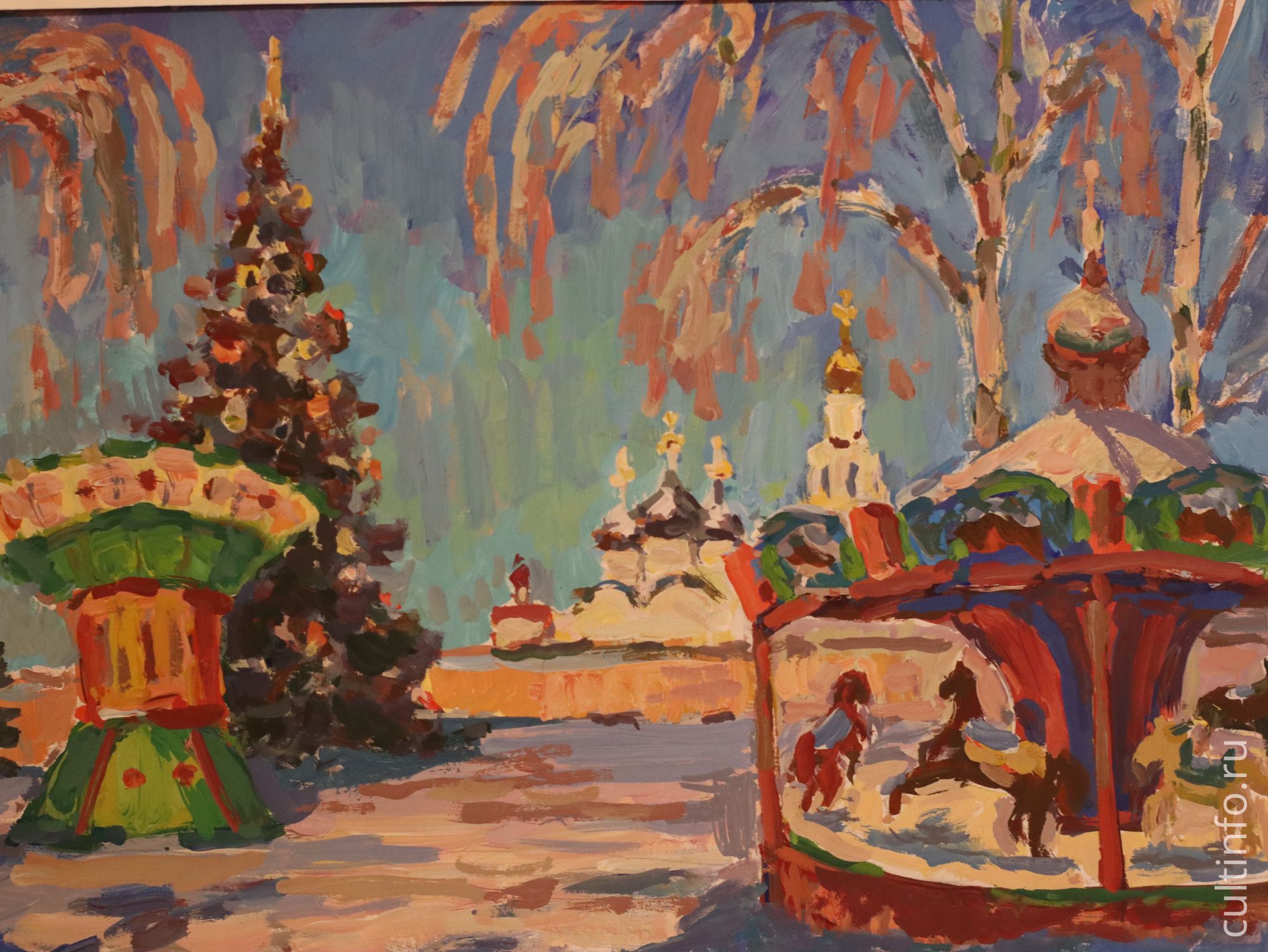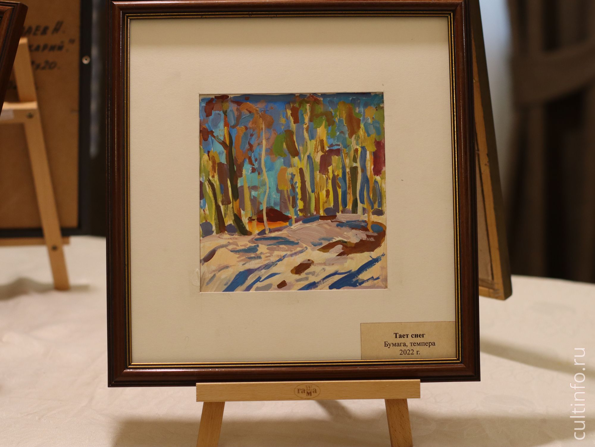 Художник тщательно отбирал работы для выставки: сначала определял, какие картины подойдут для больших залов, а какие – для камерных пространств, сочетал живописные и графические произведения, чтобы передать атмосферу Вологды и окрестных мест. Отдельное место среди экспозиции занимает полотно с видом Ферапонтова монастыря – любимая работа Николая Шалаева.