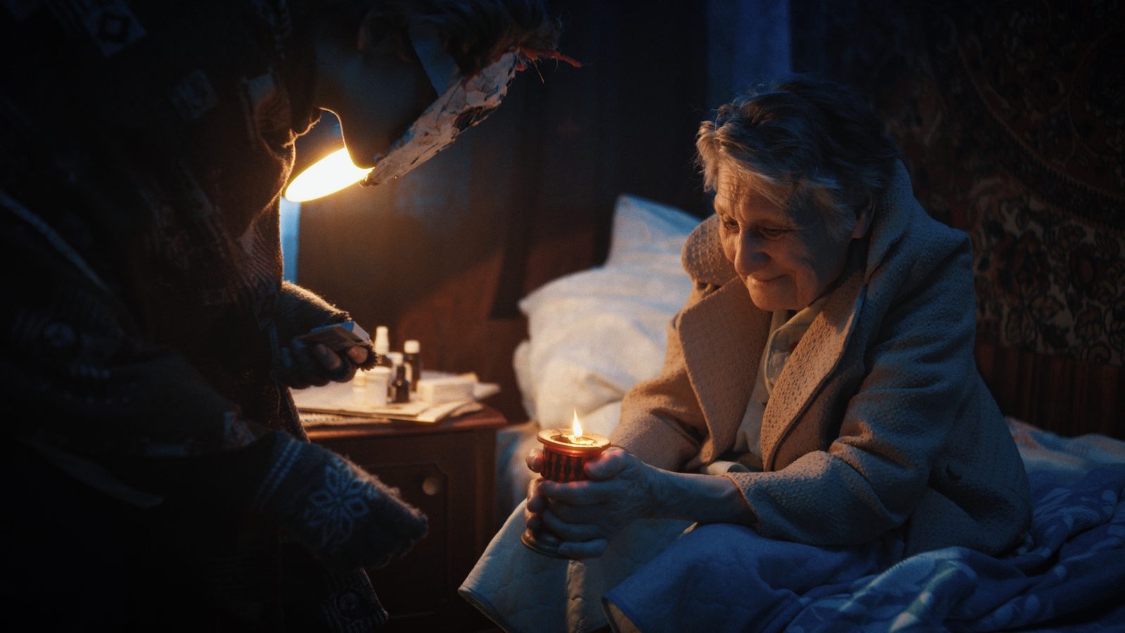 комнату фонариком телефона, он обнаруживает, что хозяйка тяжело больна и,