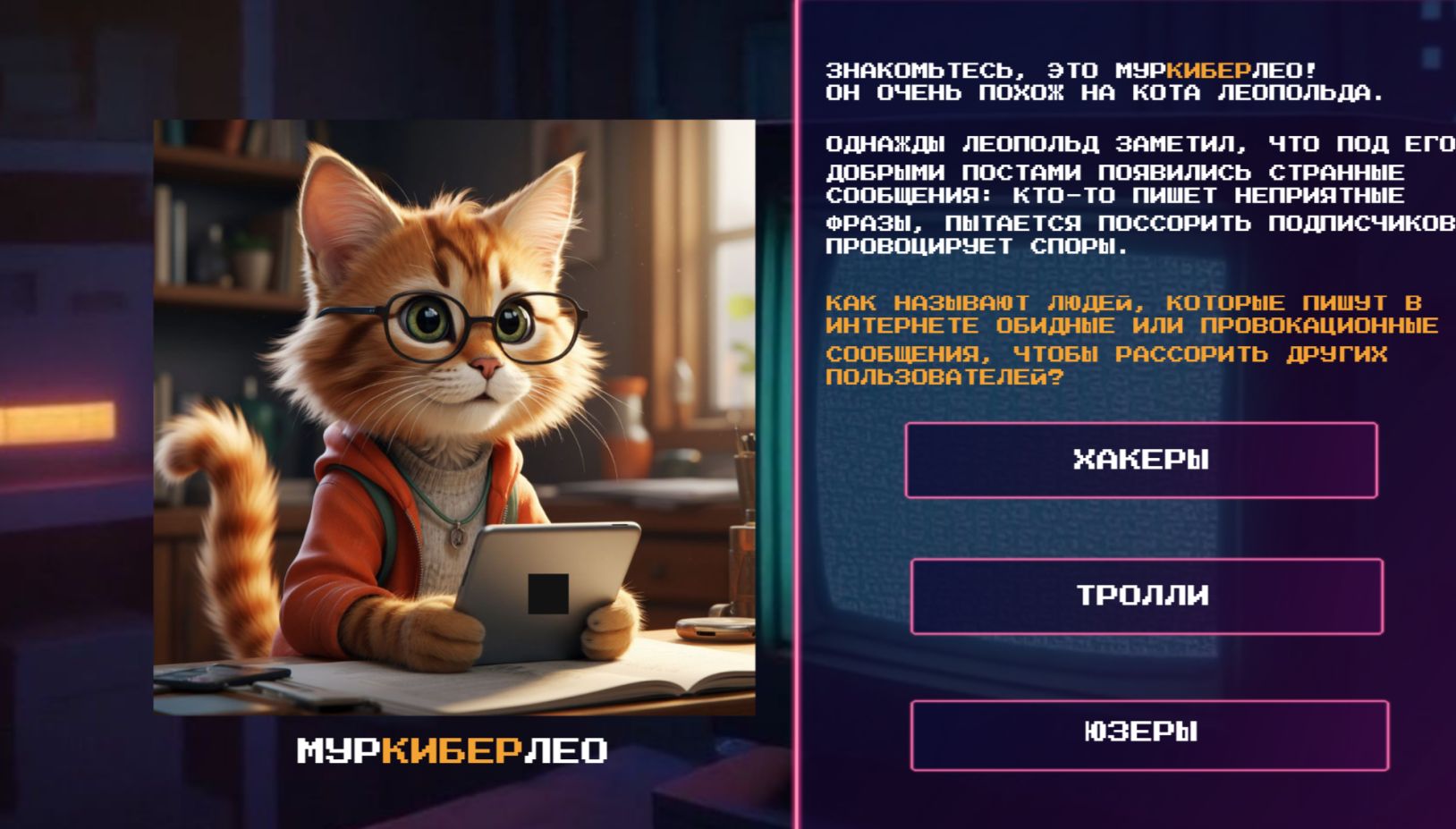 Вологодская областная детская библиотека приглашает всех желающих, особенно школьников, принять участие в онлайн-игре «Киберград: миссия безопасности». Участникам предстоит выполнить интересные задания от жителей далекого Киберграда, проверить свои цифровые знания и понять, как пользоваться интернетом безопасно.