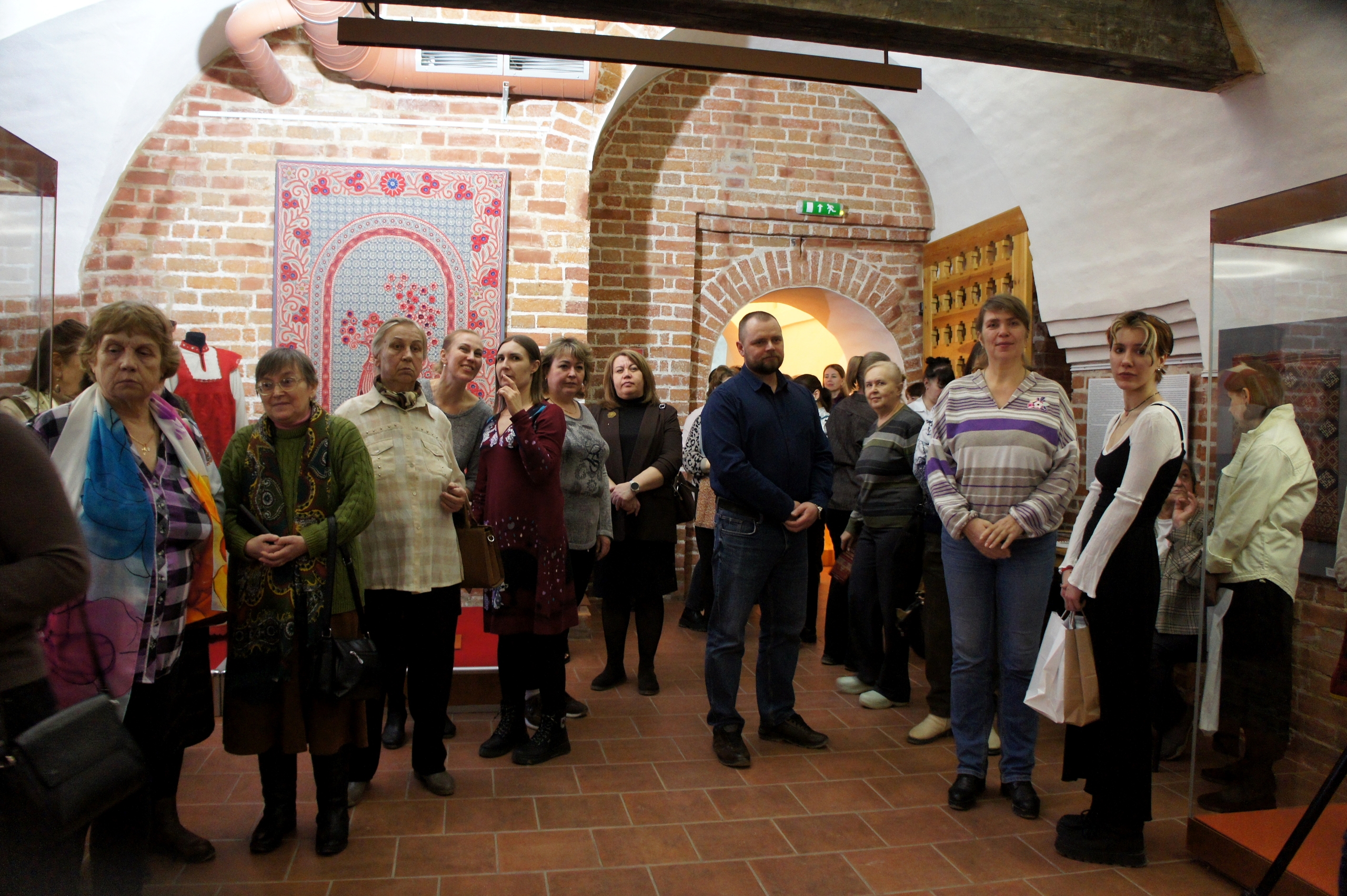 В официальной презентации выставки «Народное искусство Рязанской земли» в Кириллове приняли участие сотрудники рязанского и кирилловского музеев, краеведы, вологодские искусствоведы Галина Дементьева и Галина Иванова, представители СМИ. Кураторскую экскурсию по выставке провела заместитель директора Рязанского художественного музея им. И.П. Пожалостина по научной работе Ирина Денисова. Особое внимание гости музея уделили не только вышивке, в которой использовали счетные техники (гладь, крест, набор, цветную перевить, мережку…), тамбур и другие швы, не связанные со структурой ткани, но и кружеву.