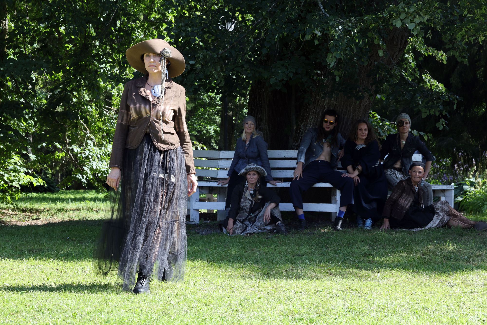 У главного усадебного дома состоялись модные показы. Шесть модельеров представили свои коллекции, в которых соединились африканские мотивы, аристократизм и пиратская тема, впечатления от путешествий и плоды совместного вязания с мамой.