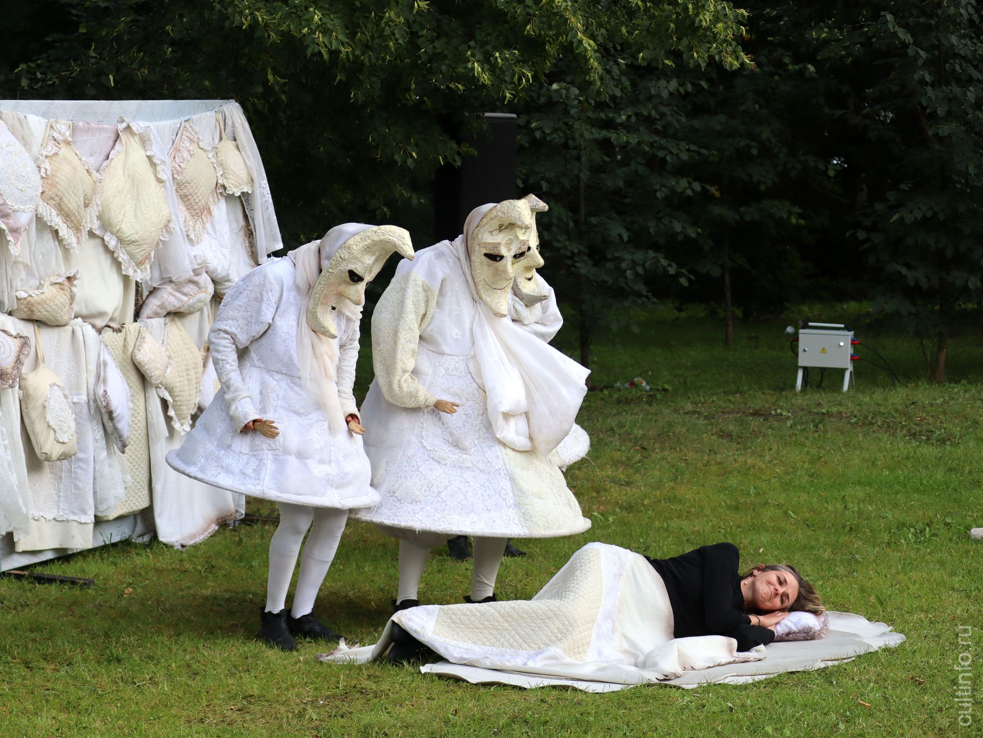 «Это уникальное даже для нашей 30-летней практики явление, – говорит художественный руководитель Санкт-Петербургского профессионального уличного театра «ПЭЖО», известная как «Матушка Медоуз», Анна Шишкина. – Это постановка в жанре сайт-специфик, и она может существовать только в стенах этой усадьбы, с ее предметами в качестве реквизита. Проект на антресолях усадьбы получился нежный, связанный с историей. Конечно, это не история усадьбы, это её сны, галлюцинации. В спектакле почти нет текста, но звучит музыка, в каждом пространстве – своя. Ее писала композитор Ефросинья Скотникова. Художники оформляли площадки».