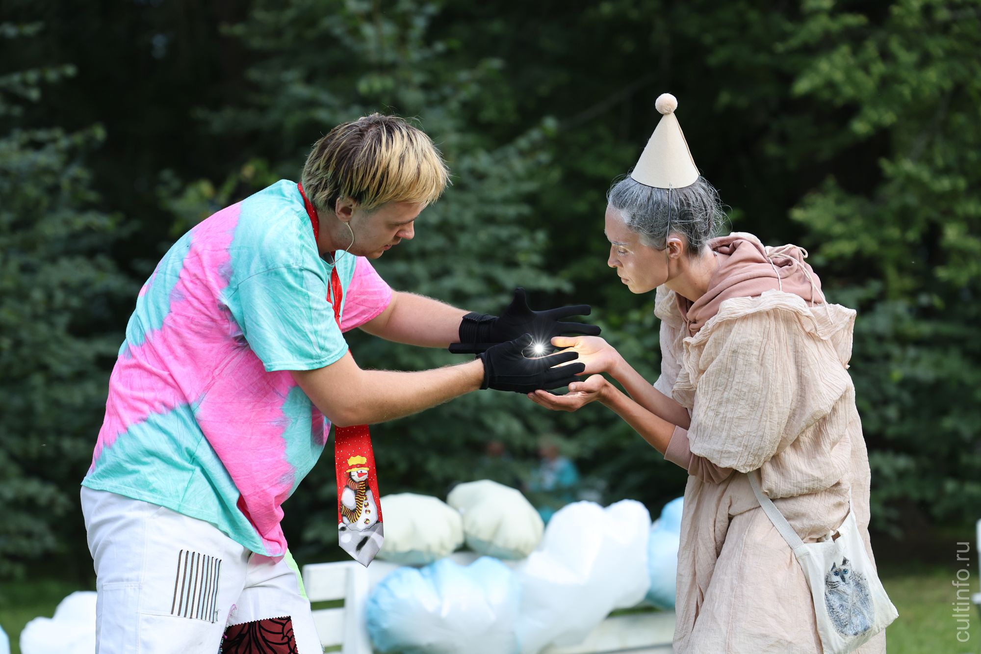 «Это своеобразный тизер проекта. Мы искали такую усадьбу, которая была бы достаточно камерной и подходила нам по открытости и дружелюбности. И усадьба Спасское-Куркино нам понравилась по многим параметрам. Она пока ещё не так широко известна, и такое событие могло бы привлечь к ней внимание. Но при этом хранители – заинтересованные люди. Они сразу откликнулись и были готовы помогать. Нас очаровали интерьеры усадебного дома, которые хорошо подошли для нашего перформанса. Мы делали этот фестиваль практически без финансирования, и сюда приехали наши друзья, для которых мы ставили спектакли, играли на их фестивалях», – рассказал продюсер фестиваля, директор театра «Странствующие куклы господина Пэжо» Олег Скотников.