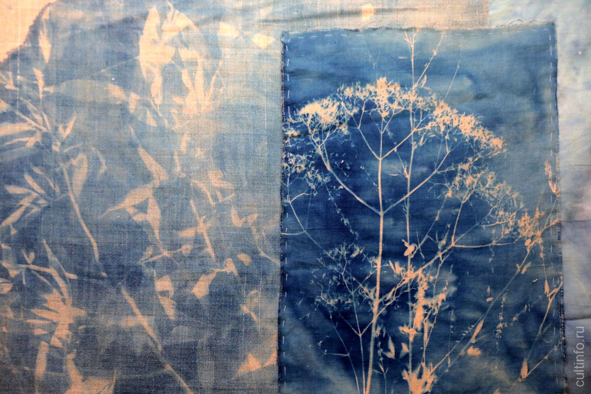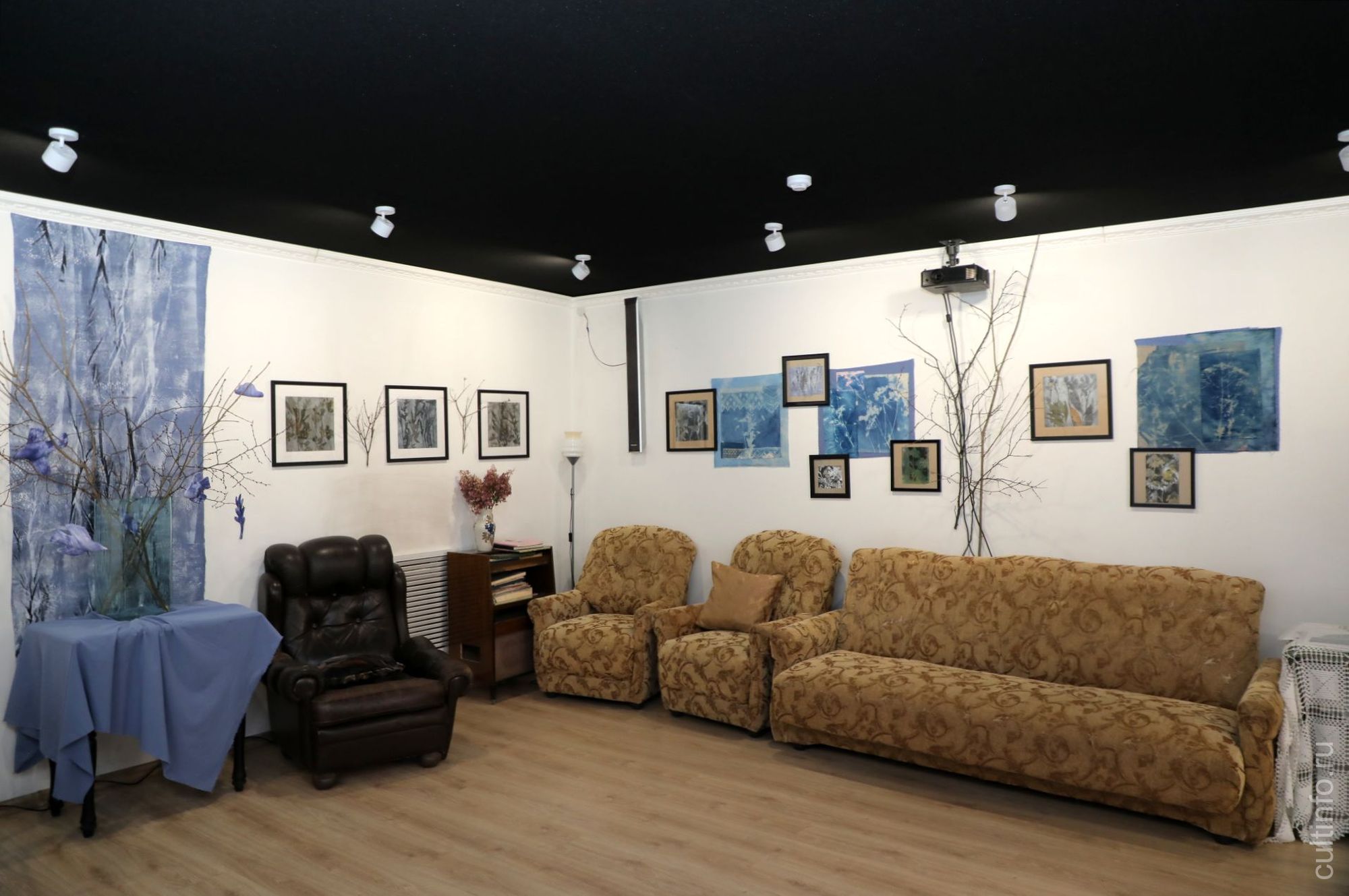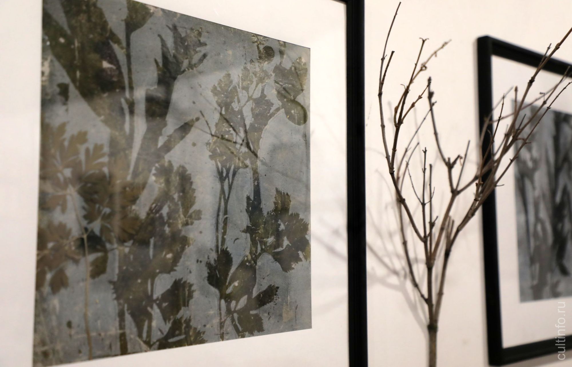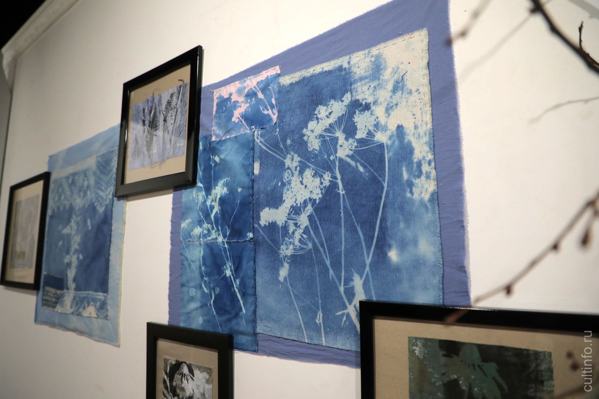 В экспозиции дизайнера Татьяны Соколовой «Пробуждение» представлены необычные работы, созданные в технике цианотипии (фотографический процесс, который даёт изображение синего оттенка), графика.