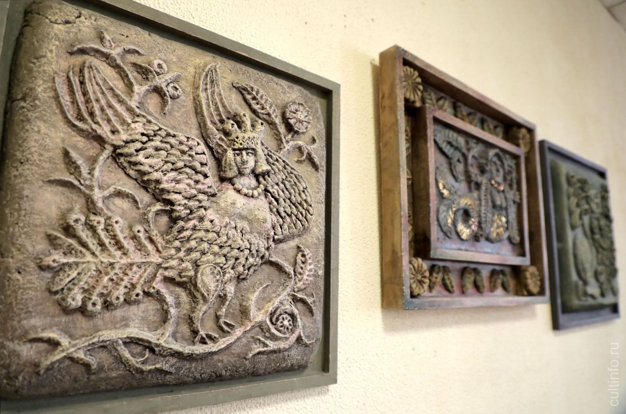 С 12:00 и до 16:00 можно бесплатно посетить литературное пространство и получить праздничную чашку чая. В резиденции работает три выставки. Из картинной галереи переехали «Объемы» Константина Соколова – это панно, выполненные в технике папье-маше, с изображением славянских символов, фрагментов домовой резьбы, северных изб.
