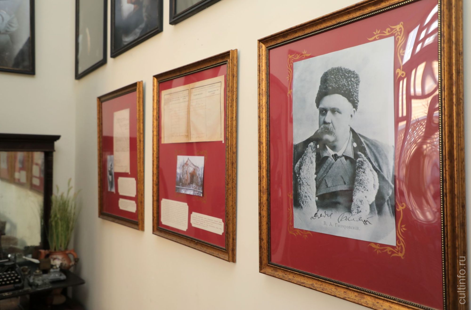 В доме можно познакомиться с биографией Владимира Гиляровского, увидеть вещи, напоминающие об одном из прежних владельцев дома – провизоре Вацлаве Подзерском. Постоянная экспозиция пополняется благодаря гостям и друзьям литературной резиденции. Здесь можно встретить расписанную Мариной Кулаковой мебель, авторские игрушки Татьяны Соколовой, работы вологодского художника Алексея Мазилова и его учеников, полотна московского живописца Виктора Комарова, а также коллекцию советской теле-и радиотехники. А дети могут посидеть за школьной партой, реконструированной по чертежам 1870 года.
