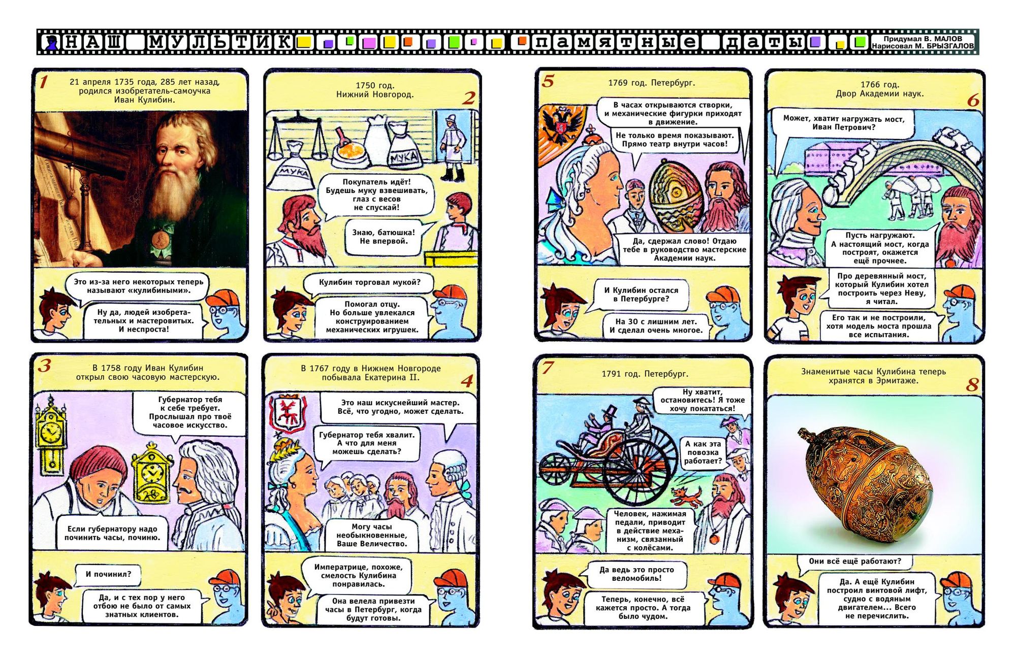 «Комикс – это особое направление в книжной графике, что-то между книгой и мультфильмом. В красочной и запоминающейся форме журнал рассказывает детям о значимых фигурах нашей истории. Мне эта работа очень интересна», – отмечает Марат Брызгалов.
