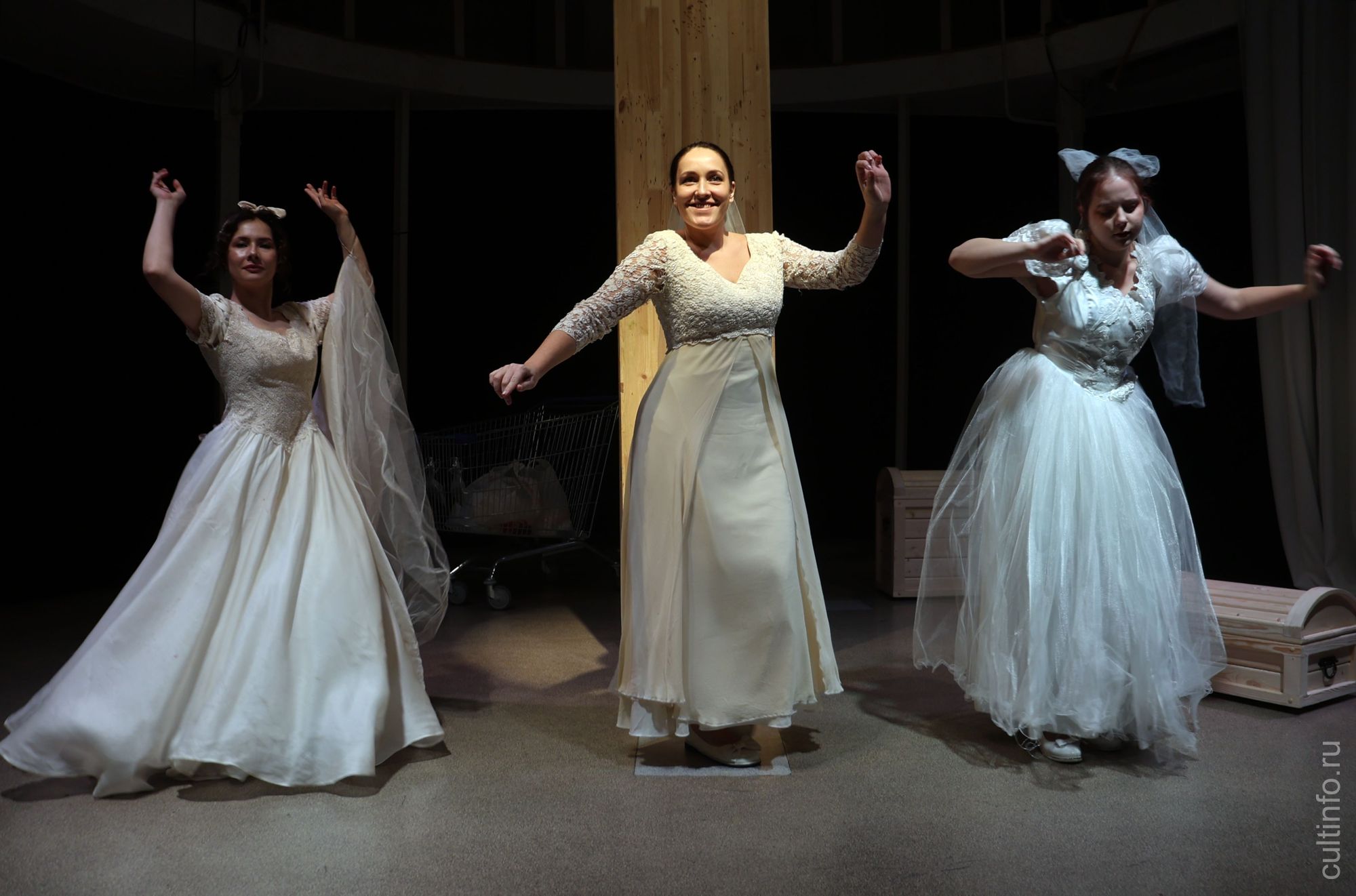 Традиционные образы диснеевских принцесс решили заменить образами невест. Актрисы играют в настоящих свадебных платьях, владелицы которых выходили в этих нарядах замуж и отдали их для спектакля. Правда, в конце свои сказочные одеяния принцессы меняют на более удобную одежду. Но прежде каждая сражается со своим внутренним драконом.