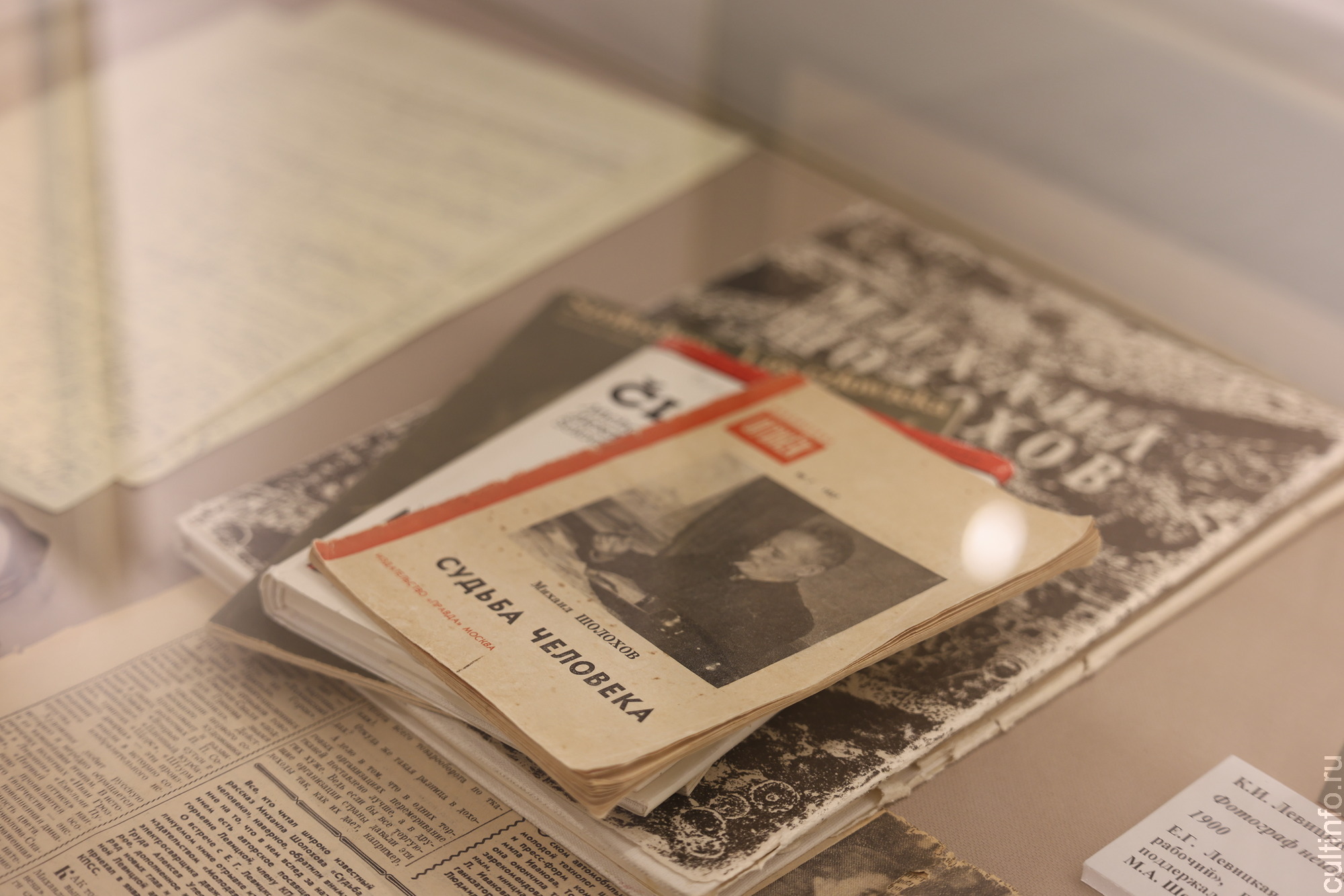 До 14 декабря в музее «Литература. Искусство. Век XX» можно посетить выставку «Они сражались за Родину», посвященную творчеству Михаила Шолохова. В центре внимания – произведения писателя, написанные в годы Великой Отечественной войны: от очерков и рассказов до монументального романа «Они сражались за Родину». Все они стали летописью героизма советского народа. Предметы для экспозиции предоставил Государственный музей-заповедник М. А. Шолохова в Ростовской области.
