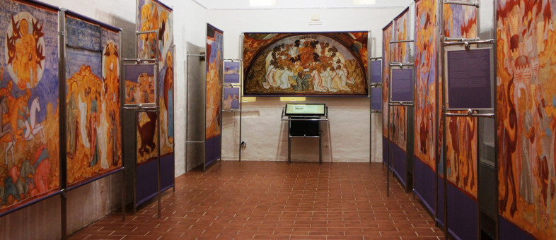 Фотоэкспозиция включает 16 полотен с качественными изображениями расписных стен Троицкого собора в Даниловом монастыре Переславля-Залесского. Их автор – костромской иконописец XVII столетия Гурий Никитин.