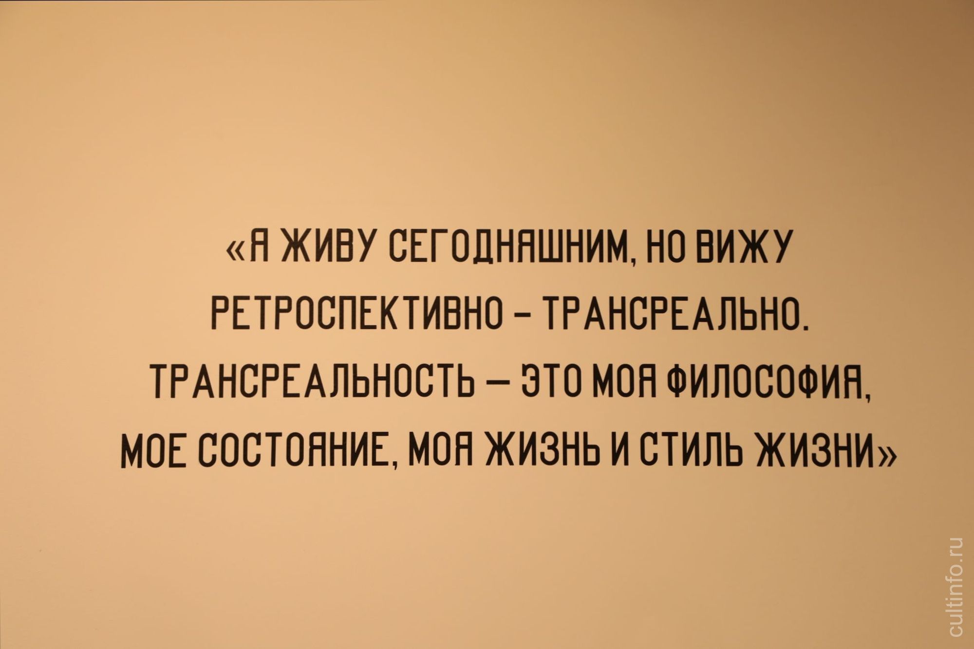В экспозиции представлено около 30 работ, наиболее показательно демонстрирующих концепцию трансреальности Крыжевского. Как отмечает куратор выставки, сам термин мастер, скорее всего, позаимствовал из американской литературы. Ввел его в оборот писатель-фантаст Руди Ракер. В своих произведениях он описывал возможность сосуществования бесконечного количества вероятных реальностей.
