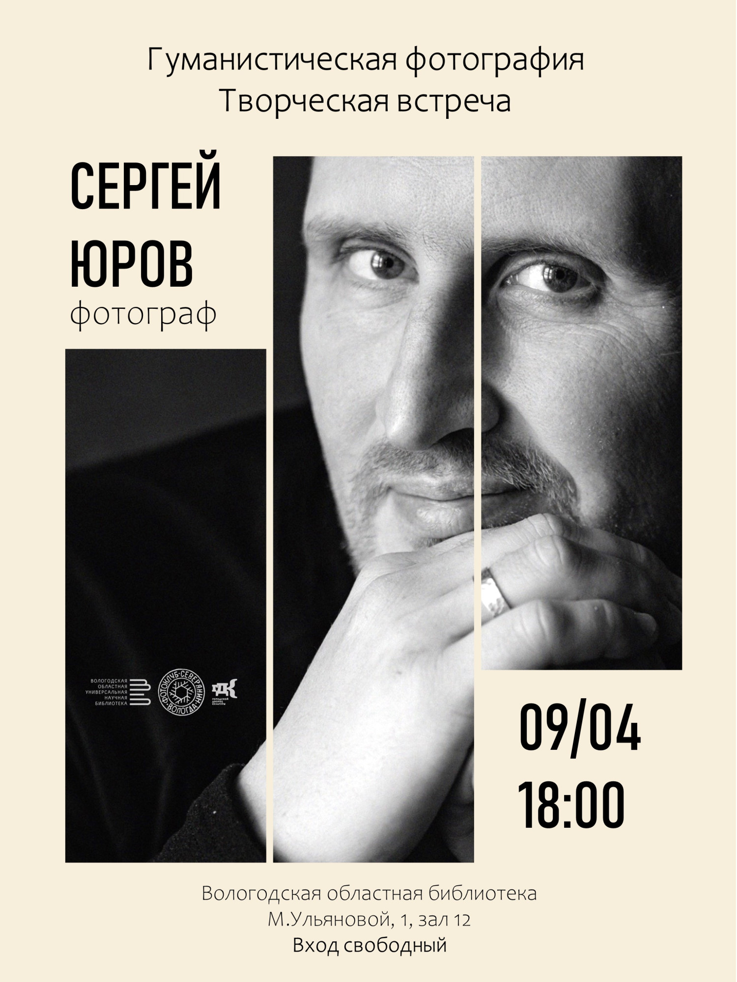 Творческая встреча с профессиональным журналистом, фотографом, членом фотоклуба «Северянин» Сергеем Юровым пройдет 9 апреля в Вологодской областной универсальной библиотеке. Начало в 18:00 в зале №12 (ул. М. Ульяновой, 1).