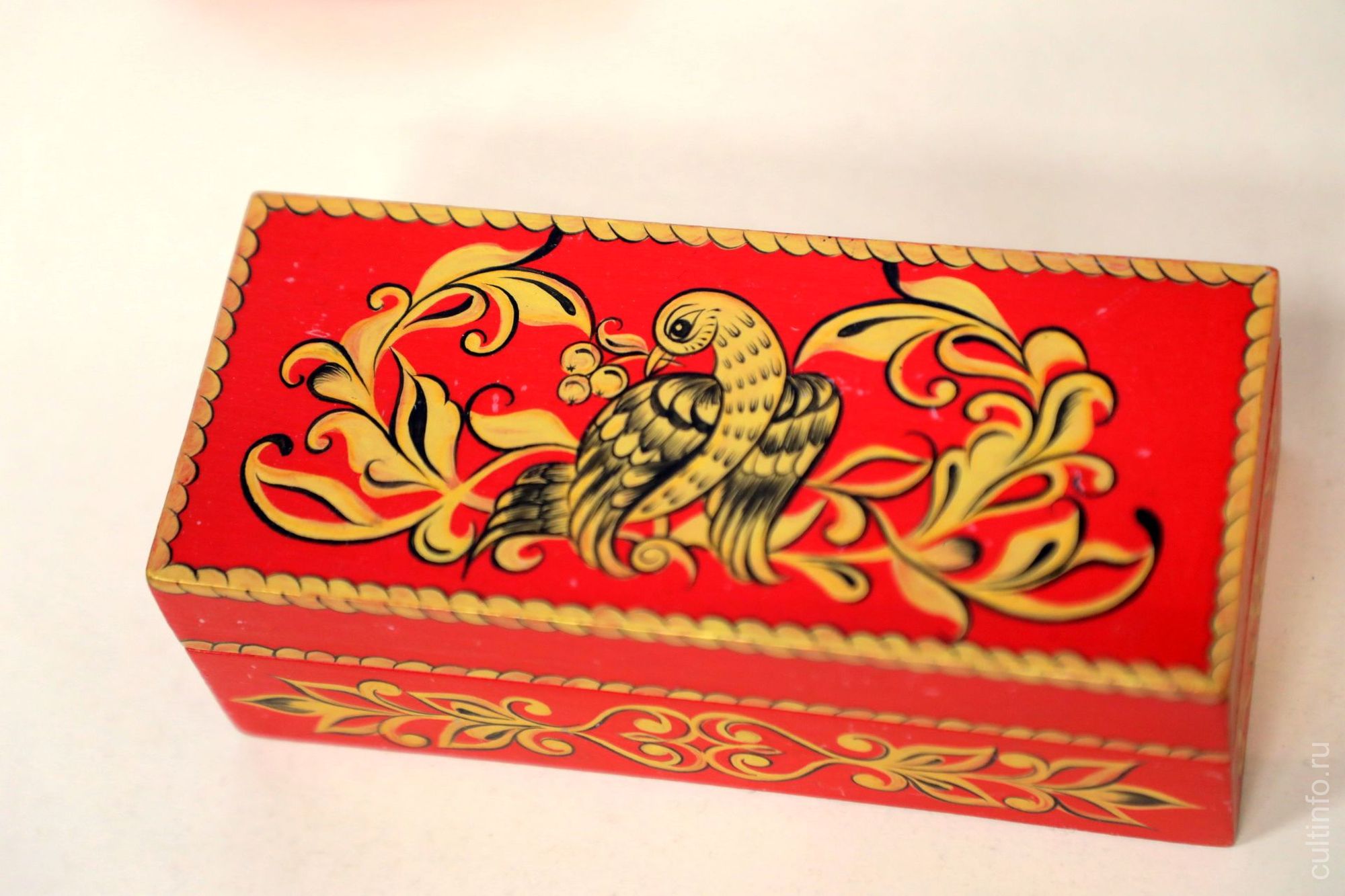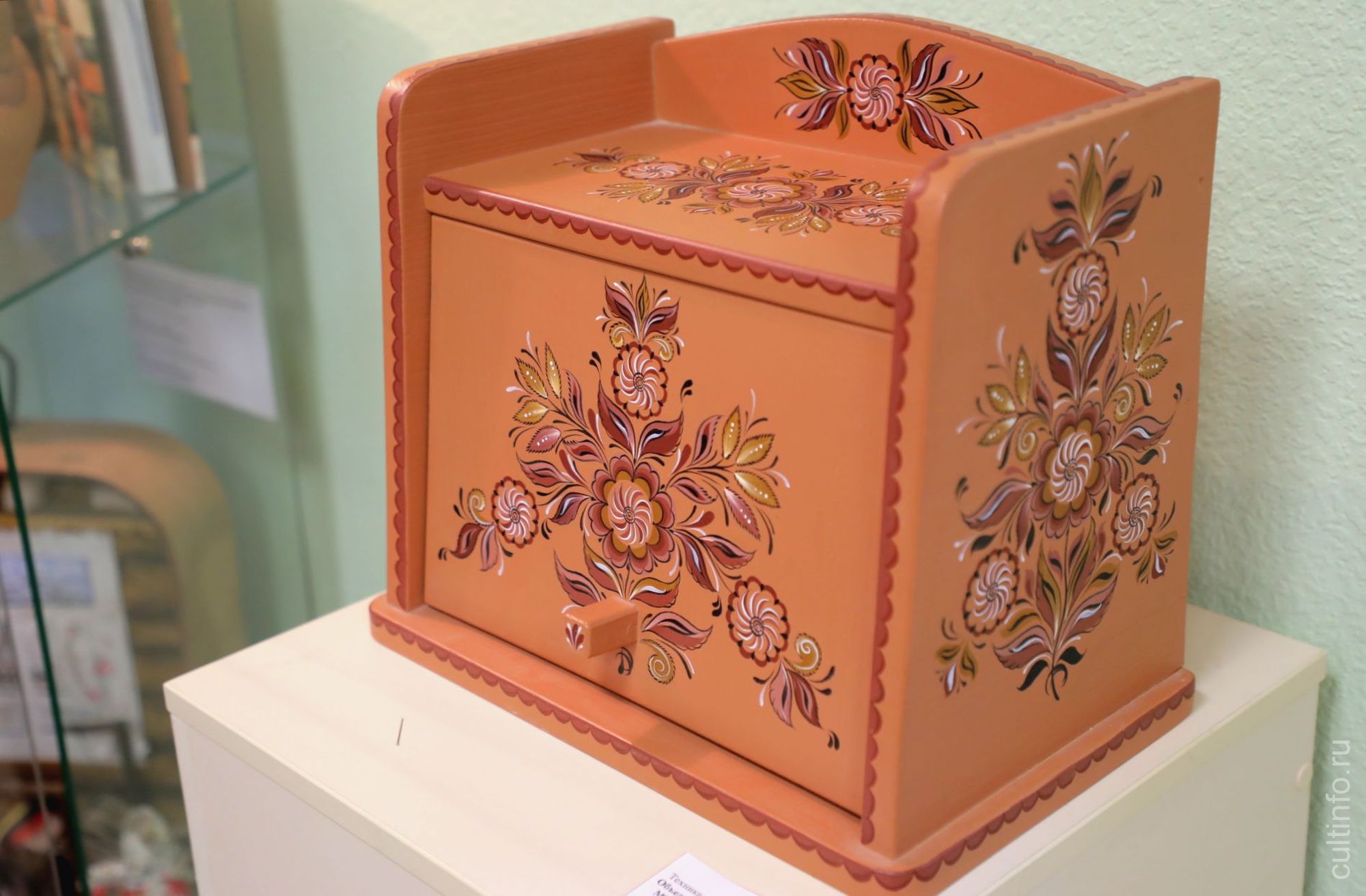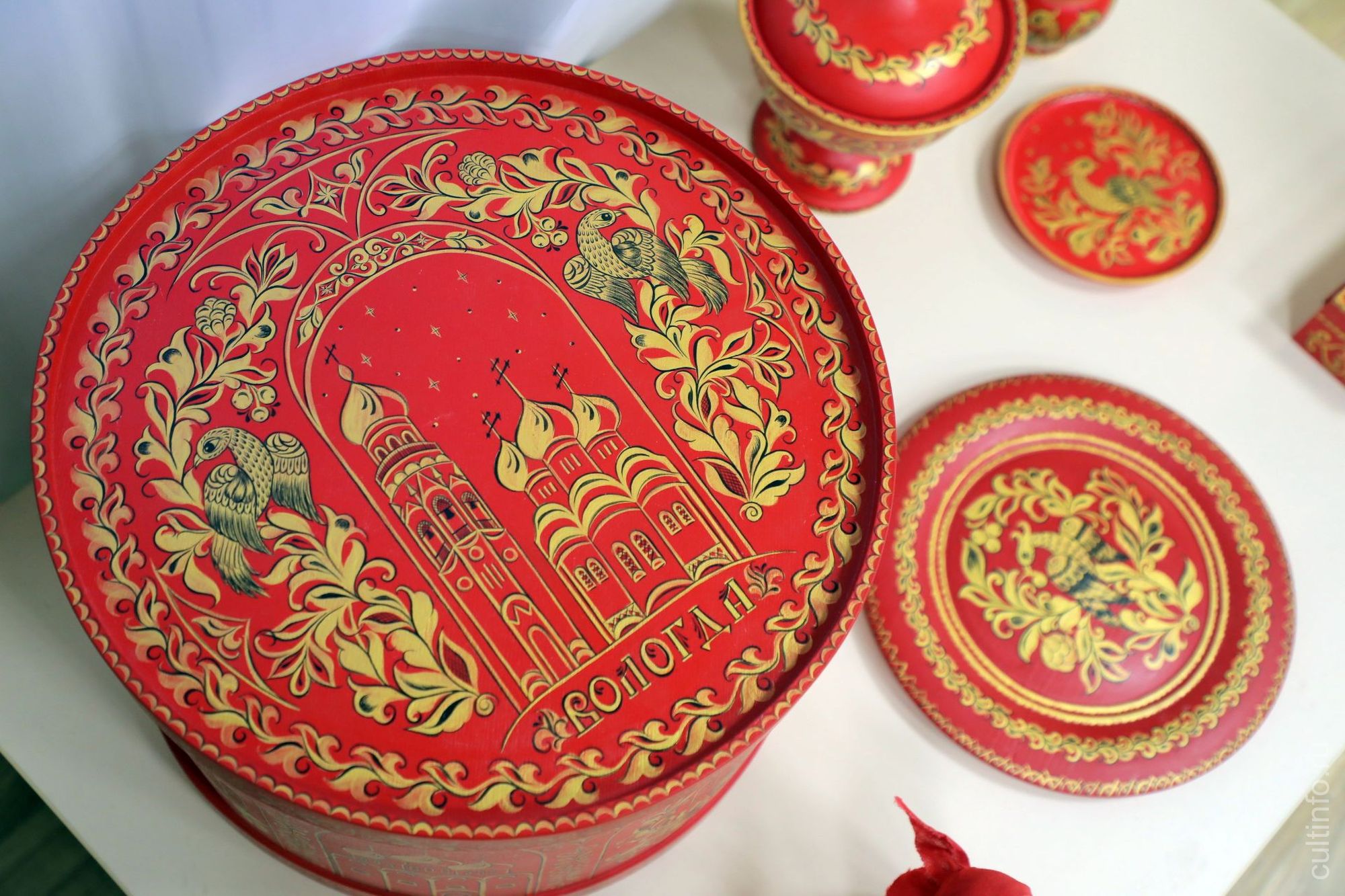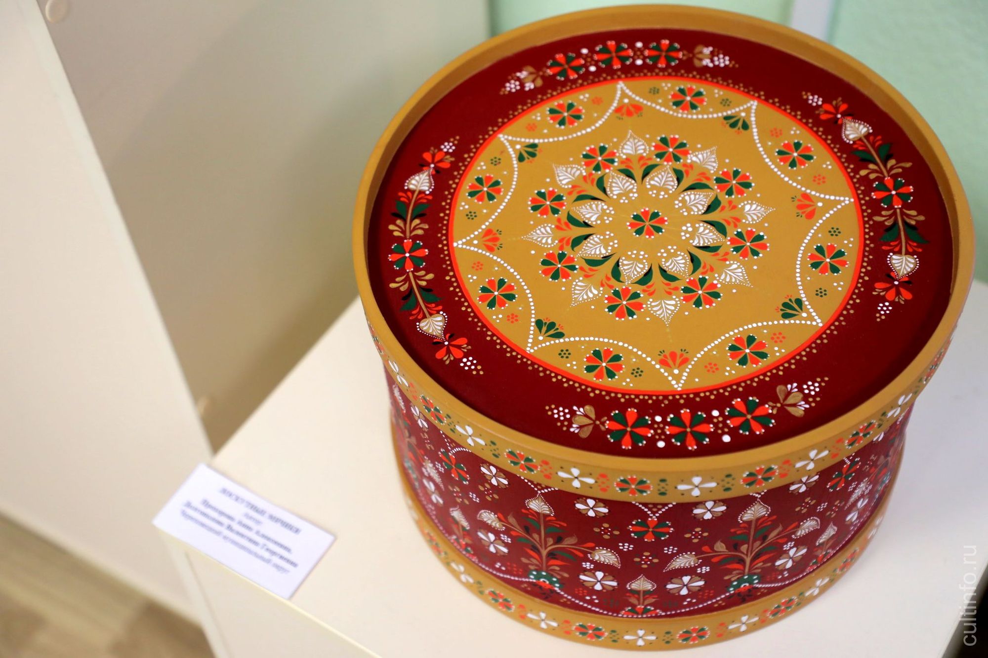 Присутствуют в экспозиции и предметы с традиционными росписями и их авторским переосмыслением – это всевозможные хлебницы, короба, шкатулки, посуда и даже музыкальные инструменты. Их создатели – ученики объединения «Художественная роспись» при Доме детского творчества поселка Тоншалово под руководством педагога Екатерины Гусевой. Они продемонстрировали владение техниками росписи: шекснинская золоченка, глубоковская, гаютинская и свободно-кистевые росписи. Об их особенностях рассказала на открытии выставки заслуженный работник культуры РФ, искусствовед Ангелина Глебова: «Благодаря студии «Вологодские росписи», которая уже 45 лет работает на базе Вологодского музея-заповедника, у нас появилась удивительная роспись – гаютинская. Мы ее восстановили по прялкам и предметам из коллекции Череповецкого музейного объединения и нашего музея. Эта роспись еще называется «ситцевая, бисерная», поскольку она присутствует на драгоценных предметах – на шкатулочках, колечницах, сундучках. Здесь можно увидеть мелкоузорное древо жизни, семена, цветочные мотивы, выполненные только из точек и капель. Из Череповецкого округа мы также восстановили шекснинскую золоченку – это мощная роспись, краснофонная с золотом, с черными контрастными обводками».
