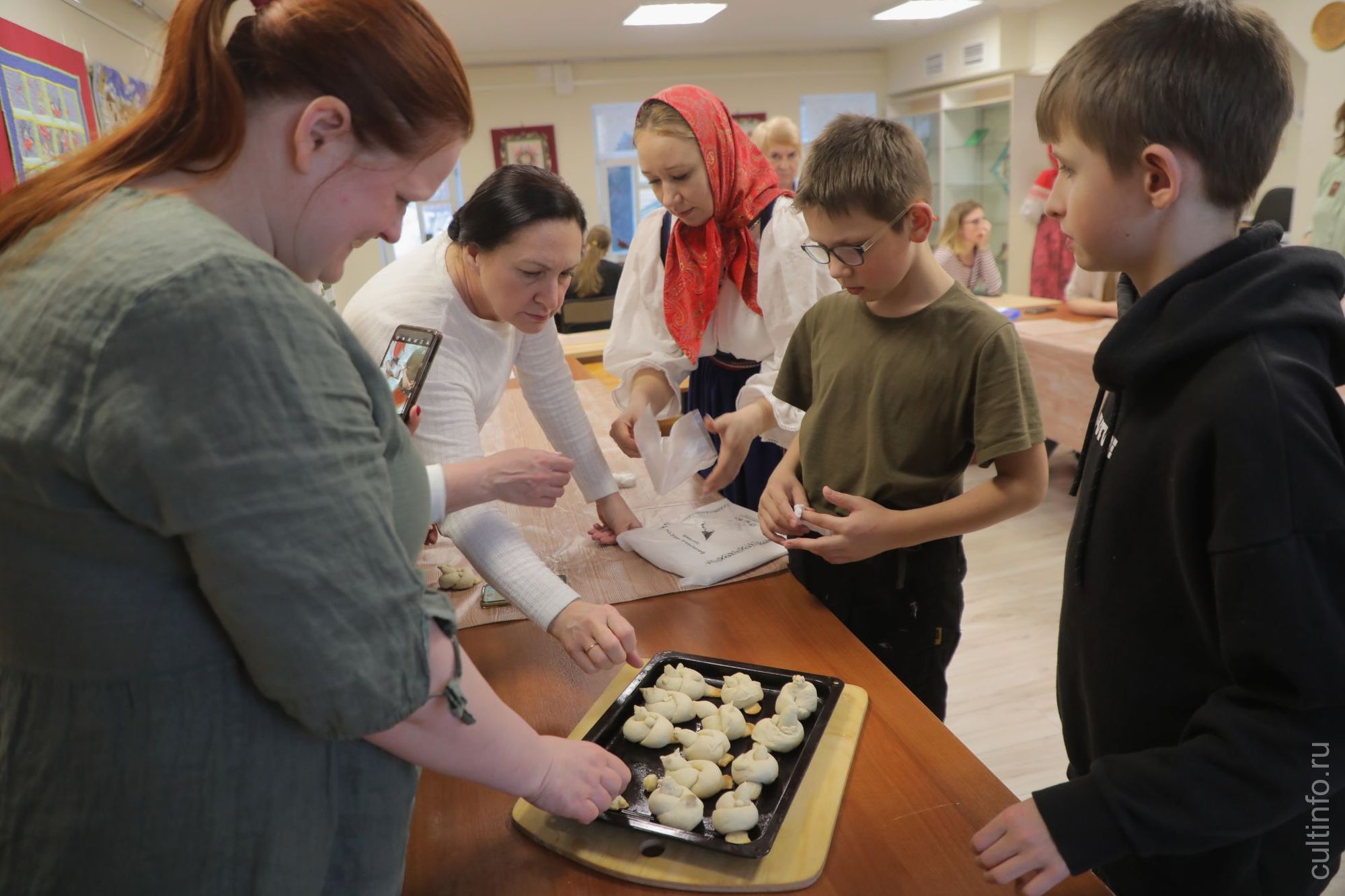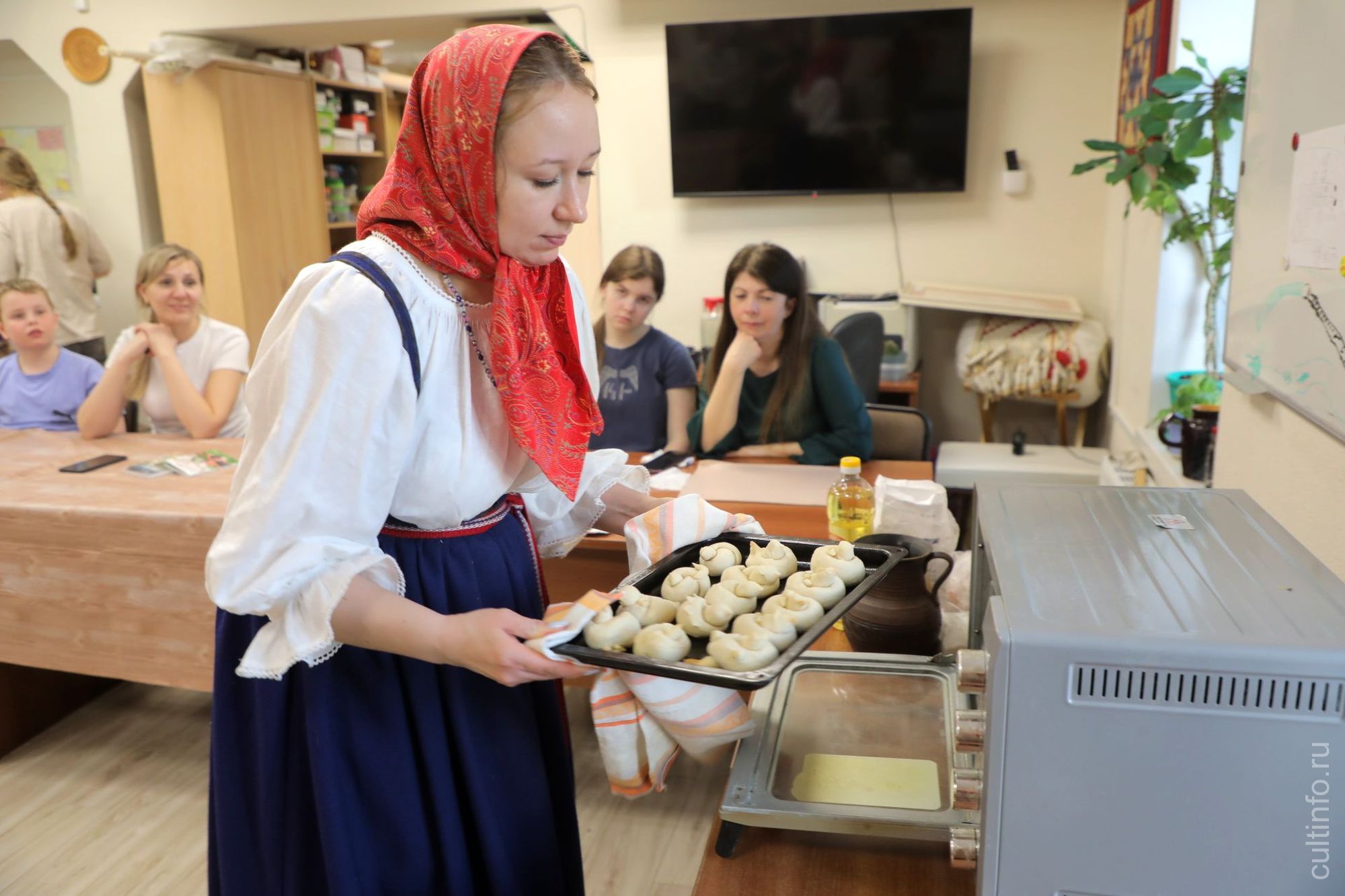 На открытии выставки вместе с мастерами из Череповецкого округа вологжане испекли обрядовых «жаворонков», сшили прихватки в старинной технике стёжки и увидели этнографическое представление в исполнении детской фольклорной студии из села Воскресенское.