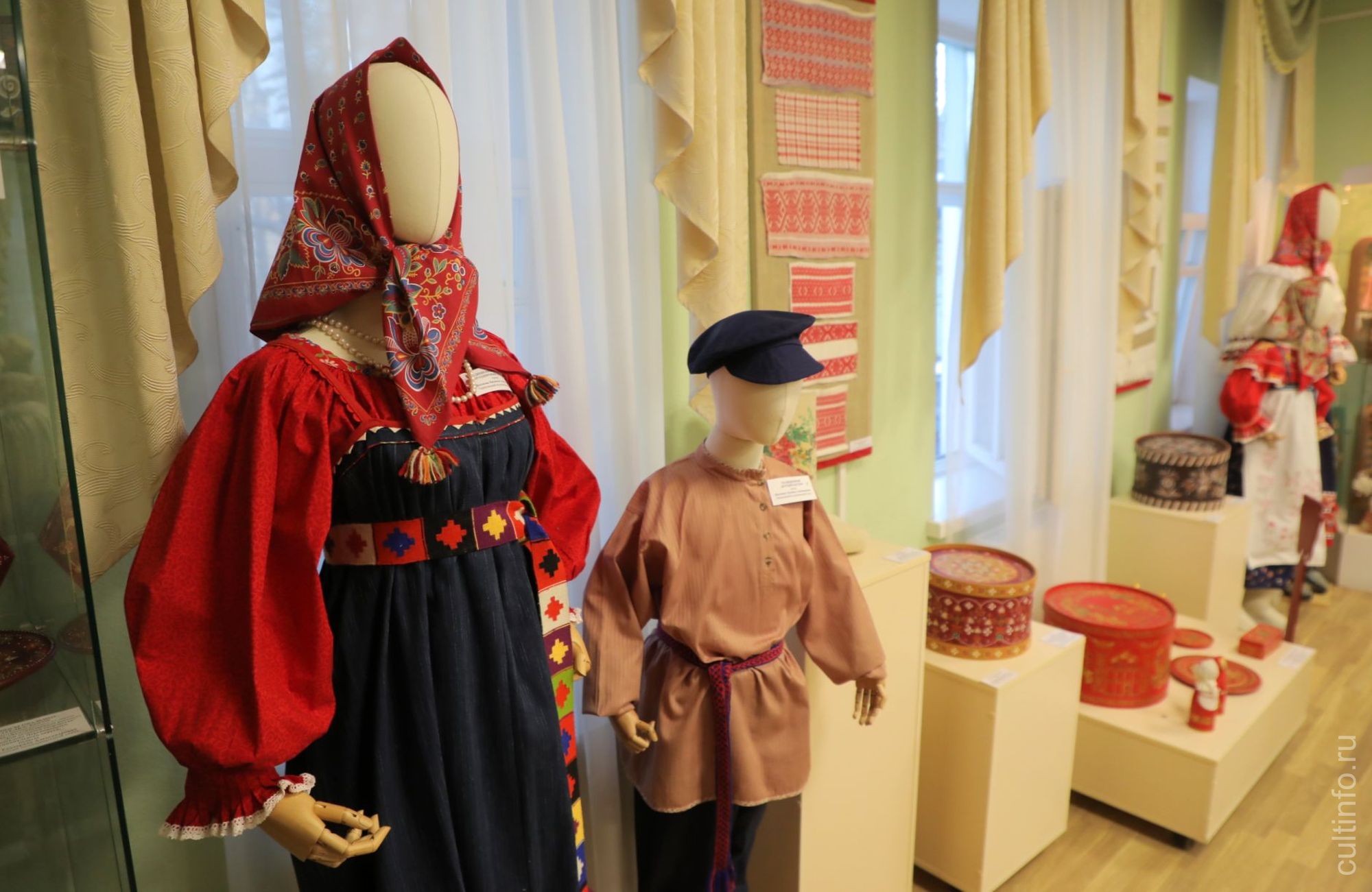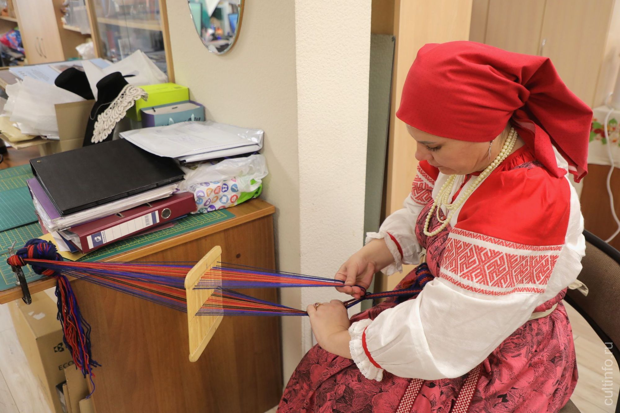 Своеобразием привлекает и традиционный женский череповецкий костюм. Характерной особенностью его является круглый московский сарафан на лямках преимущественно темно-синего цвета с аппликацией из ситцевых фрагментов, рубашка с полукруглой кокеткой, открытым воротом и пышным рукавом. Ярким акцентом становился тканый пояс с орнаментом «уточкой». «Западное искусство Вологодской области значительно отличается от восточного. Пояса в Череповецком округе делаются в технике закладного ткачества, которое дает яркие сочетания и контрастные узоры. Такие замечательные пояса можно встретить в Устюжне, Череповце, Кирилловском округе», – отметила Ангелина Глебова. Ткачество и народную куклу представляют мастер народных художественных промыслов Вологодской области, методист ЦТНК села Воскресенское Анна Прохорова и мастерицы Валентина Долгополова, Галина Безобразова.