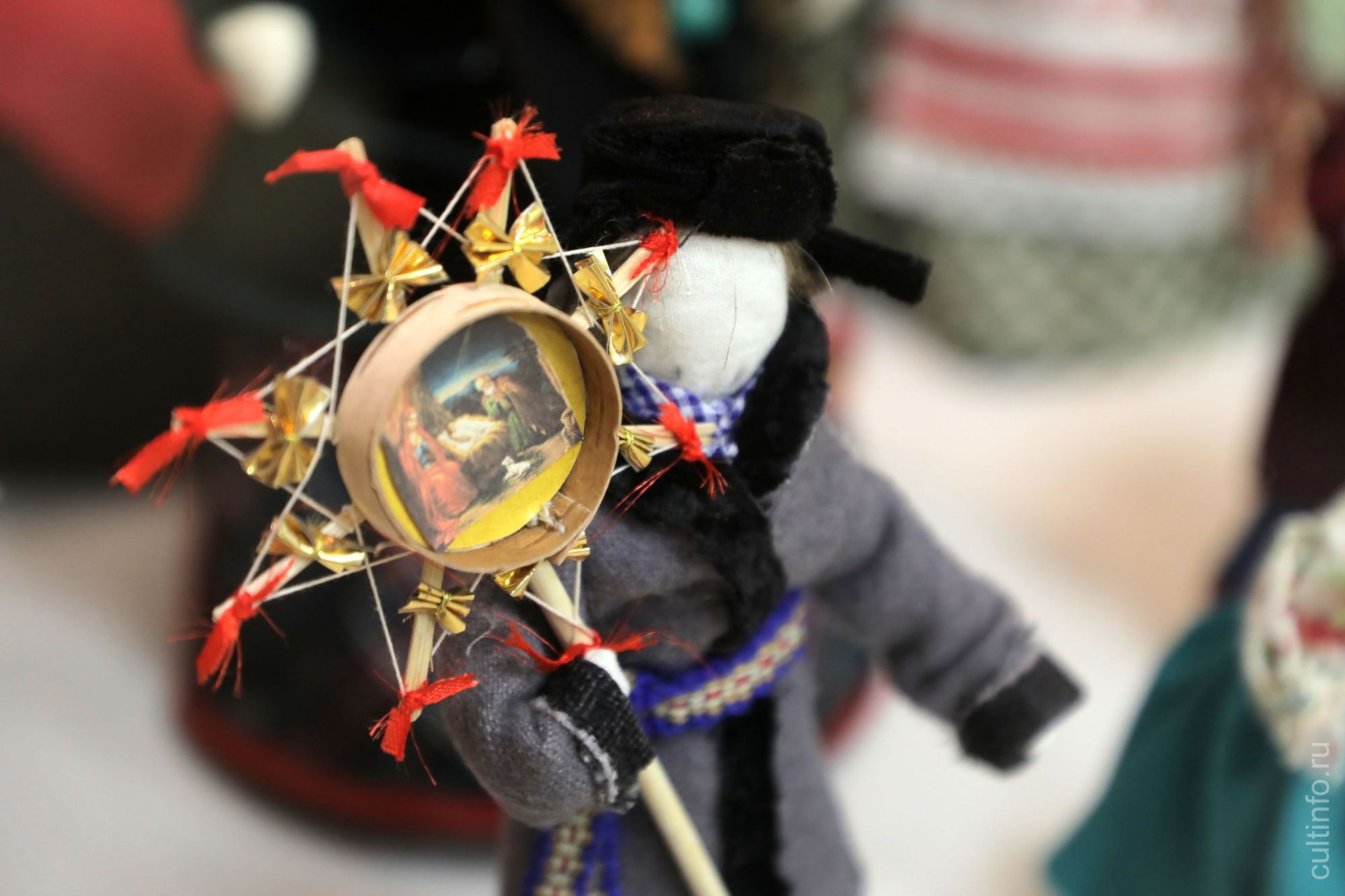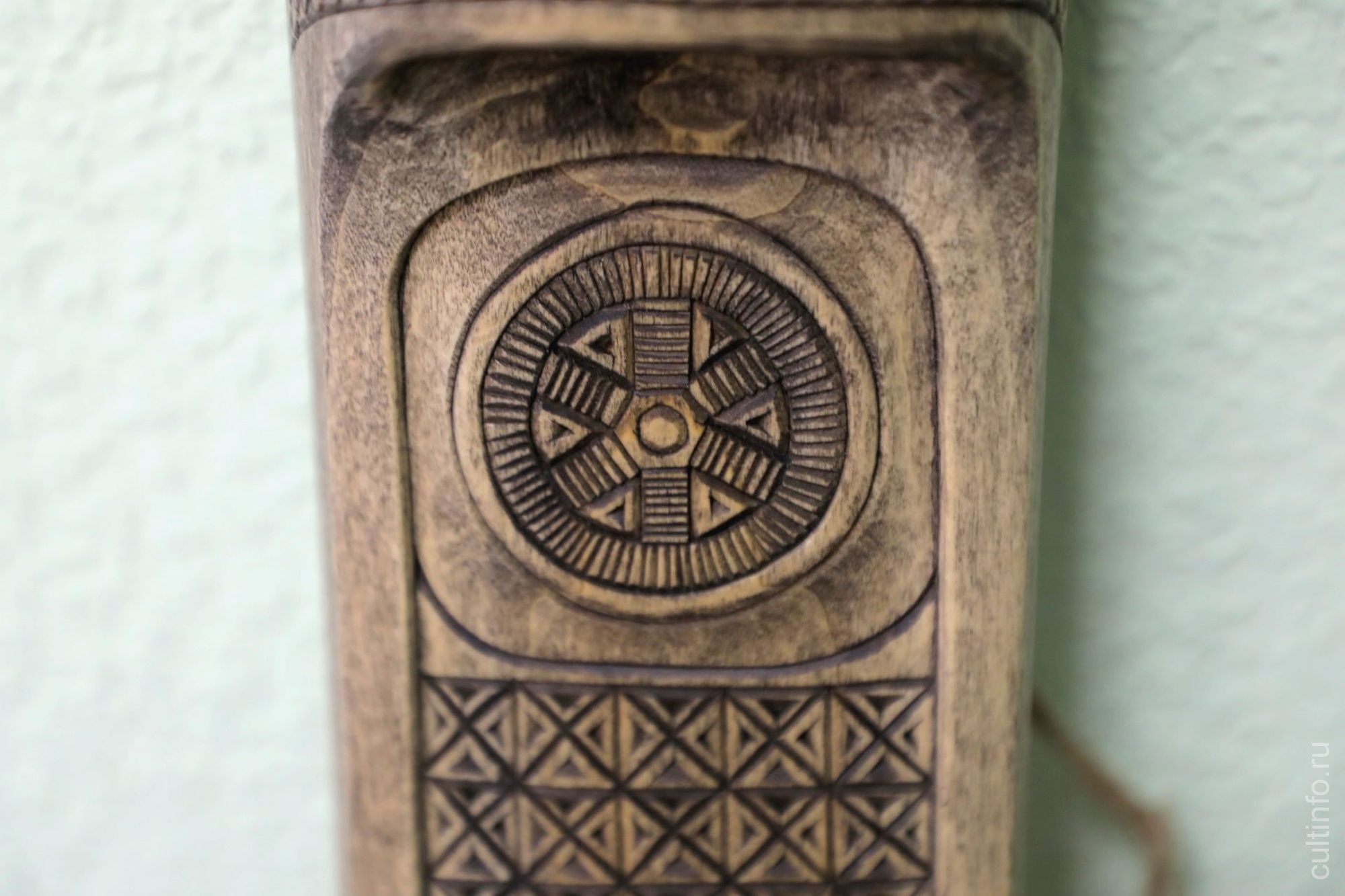 Представитель еще одной мастеровой семьи – Алексей Безобразов. На выставке экспонируются его деревянные кони, куклы-панки с резными орнаментами и солярными знаками. Алексей Олегович родом из Костромской области. Он создал авторскую николо-березовскую игрушку, занимался изготовлением ложек и наличников, но остановился на северной игрушке, обучил и сына Юрия работе с деревом.