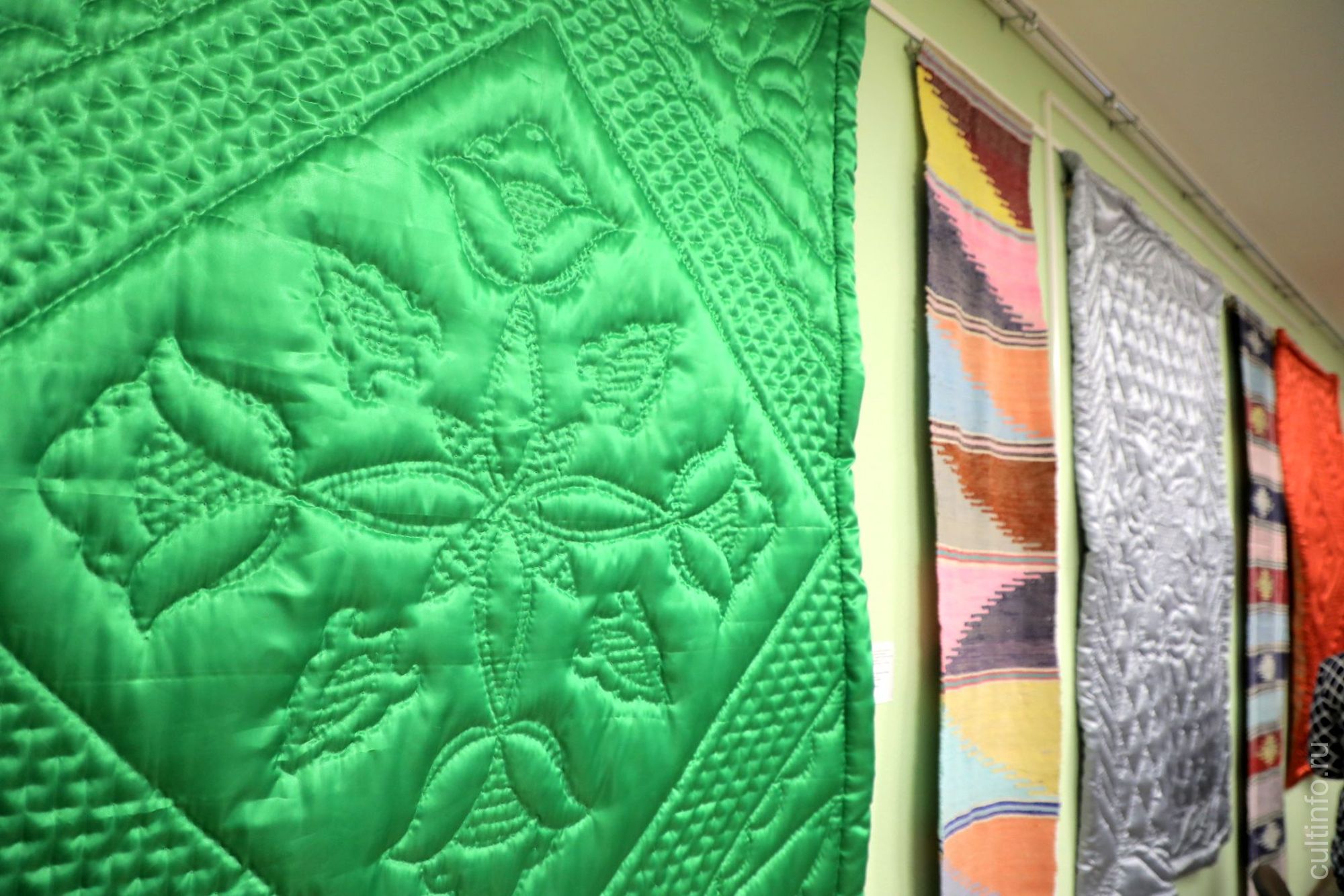 Впервые в областном ЦНК выставлены стеганые одеяла мастерской «Сделано с любовью» Ново-Леушинского Иоанно-Предтеченского женского монастыря. «В 2022 году по инициативе сенатора РФ Елены Авдеевой при поддержке игуменьи Ново-Леушинского монастыря матушки Кириллы и энтузиастов села Мякса была подана заявка на грант Правительства Вологодской области с проектом «За стежком стежок». Целью его стало сохранение исторической памяти рукодельниц, монахинь, которые до революции стегали одеяла в монастырских мастерских. В рамках проекта мы воссоздали такую мастерскую, проводили мастер-классы. В ходе исследования найдены те самые одеяла, которые стегали монахини или их ученицы. Мы изучили технологию создания: стежку, сборку, разработку и нанесение рисунка. И после окончания проекта мы продолжили дело. На данный момент в мастерской простегано 60 одеял. На каждом присутствуют элементы с леушинских одеял, остальное дорабатываем сами, придумываем, заимствуем из интернета. Ни одно одеяло у нас не повторилось», – рассказала руководитель мастерской Ольга Кудряшова.