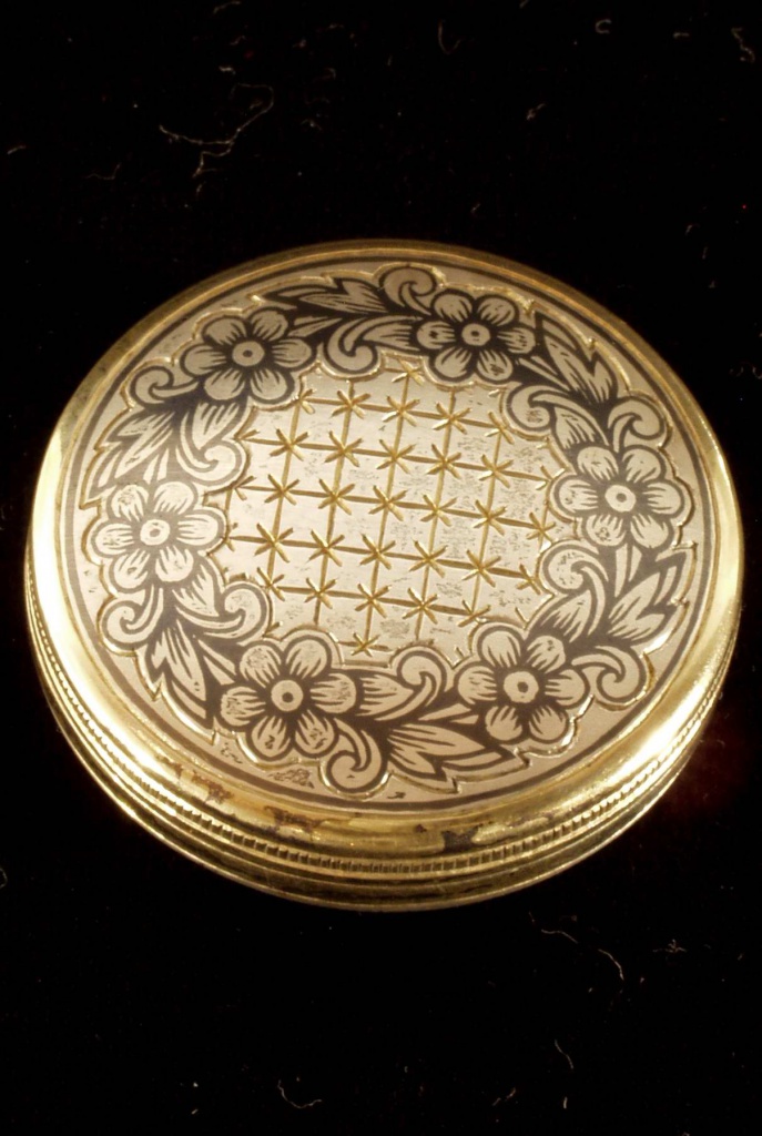 На круглой табакерке из собрания Русского музея в обрамлении черневой сетки меридианов и широт на золотом фоне помещена карта Вологодского наместничества. Тщательно прорисованы чернью реки, написаны их названия, города обозначены миниатюрными контурами строений. На оборотной стороне табакерки приведены многочисленные статистические и географические сведения о местности. Простота и строгость формы предмета и своеобразный рационализм ее декора отвечали требованиям стиля классицизма. Эту работу выполнил в 1794 году еще один выдающийся устюжский мастер Иван Жилин.