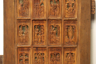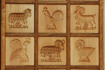Если посуда требовала объемной пластики, то на предметах, форма которых обладала большими гладкими плоскостями, применяли способы плоской выемчатой резьбы. В виде скромных порезок или развитых орнаментальных композиций она украшала поверхности вальков для стирки белья, рубелей-катков для глажения холста, трепал для очистки льна, пряничных досок и прялок.