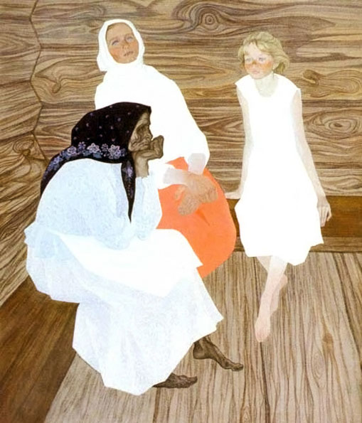 Постепенно путевые рисунки и этюды обрастали плотью размышлений, превращаясь в обобщенные, философски мудрые картины и портреты. Пожалуй, ни один из вологодских художников так емко и глубоко не изобразил судьбу русского вологодского крестьянства, как это сделала Тутунджан. Ее дар художника-монументалиста и человеческая сердечная чуткость соединились, чтоб через образы деревенских женщин, девочек, старух поведать миру о духовной красоте, мудрости и стойкости народного характера.