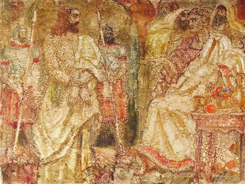 В современном вологодском изобразительном искусстве Николай Мишуста является единственным художником, последовательно и целенаправленно работающим в монотипии уже на протяжении около двух десятков лет. В его монотипиях классические приемы активно сочетаются с новаторскими, принадлежащими лишь ему одному. Рядом с нежными по цвету оттисками, напоминающими акварельные рисунки, появляются крупноформатные листы, обладающие достоинствами произведений, исполненных в технике масляной живописи. Если в начальном периоде освоения этой техники Николай Мишуста чаще выступал как пейзажист и автор натюрмортов, то в последние годы он успешно разрабатывает сложную и многогранную религиозно-мифологическую тематику, обращается к многофигурным историко-бытовым композициям. Вологодские искусствоведы традиционно относят творчество Николая Мишусты к графике, и не случайно, ведь он, как никто другой из вологодских художников, много лет работал в техниках печатной черно-белой и цветной гравюры. Но монотипия, хотя и «рождается» при участии офортного станка, по сути находится на границе двух видов искусства – графики и живописи. В отличие от тиражной графики, оттиск монотипии получается в единственном экземпляре и, потому является уникальным авторским произведением.