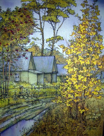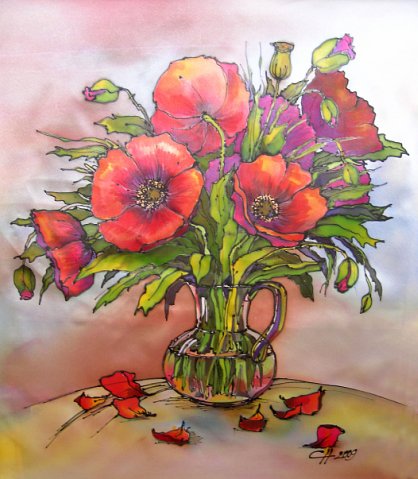 Работает в различных жанрах (пейзаж, натюрморт) в реалистической манере акварелью, а также в технике горячего и холодного батика.