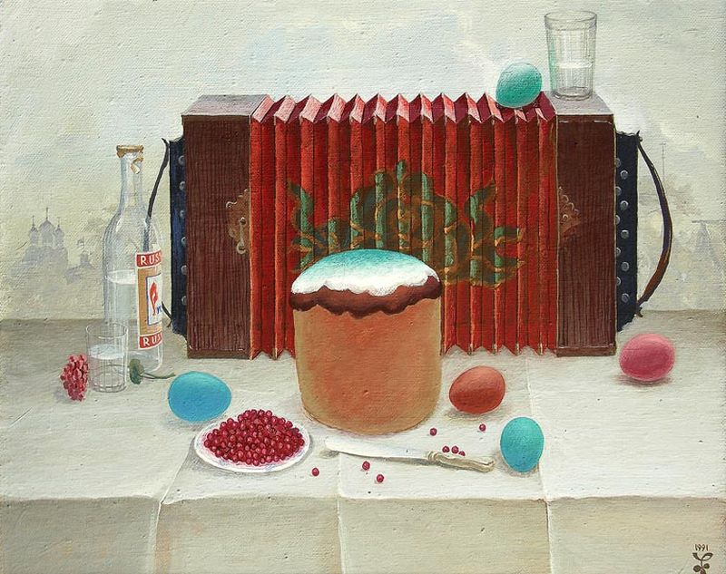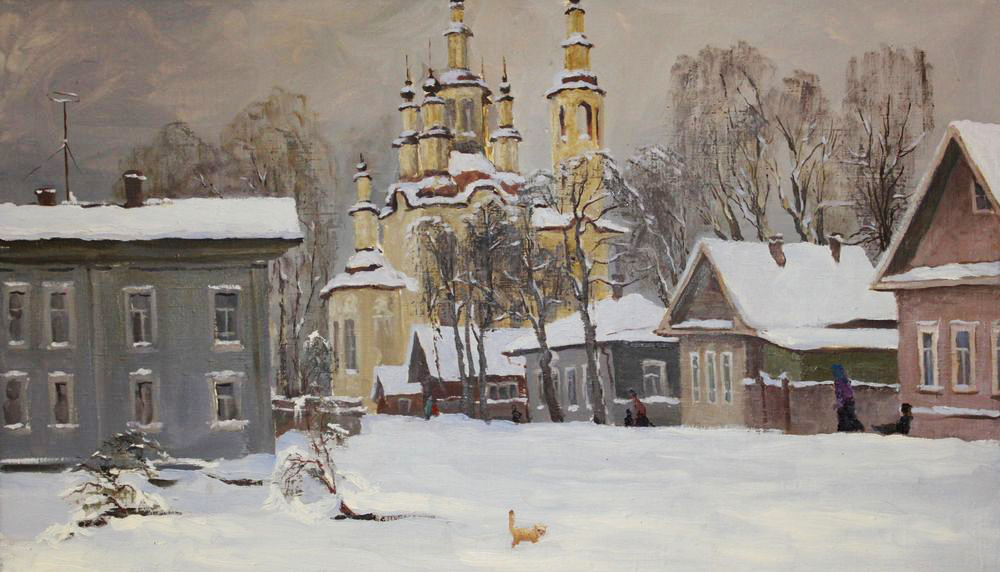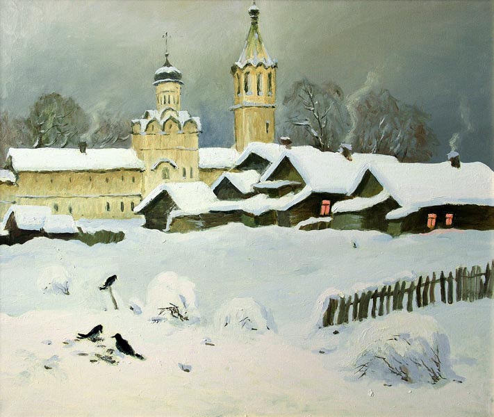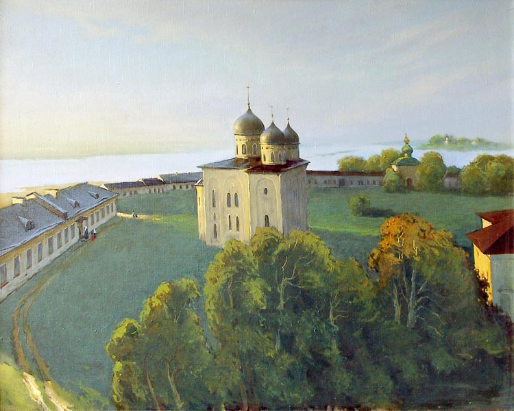 Наверное, можно сказать, что одним из главных качеств творчества этого художника, будь это картина, эскиз к спектаклю или музейная экспозиция, является режиссура произведения. Пахомов-художник тщательно продумывает и выверяет каждую свою работу. Если музей или спектакль тематически, так или иначе, сами задают эмоциональный тон, то в произведениях живописи Олег Васильевич выбирает любимую среду обитания. Это романтический пейзаж, где автор приглашает зрителя к созерцательному размышлению о времени, природе, об ушедшем и присутствующем сейчас. Пахомов-живописец тяготеет к тому, что напоминает о тех, кто любовался изображенным пейзажем много лет назад и мы, вместе с художником размышляем о своем существовании в этих местах и этот «разговор издалека» представляется мне очень ценным качеством произведений Пахомова. Художник, если говорить о темпераменте живописи, представляется мне человеком склонным не усиливать фактуру, а стремится к уравновешенности всех элементов, даже когда вместо любимого спокойного состояния природы, изображается нечто более динамичное.