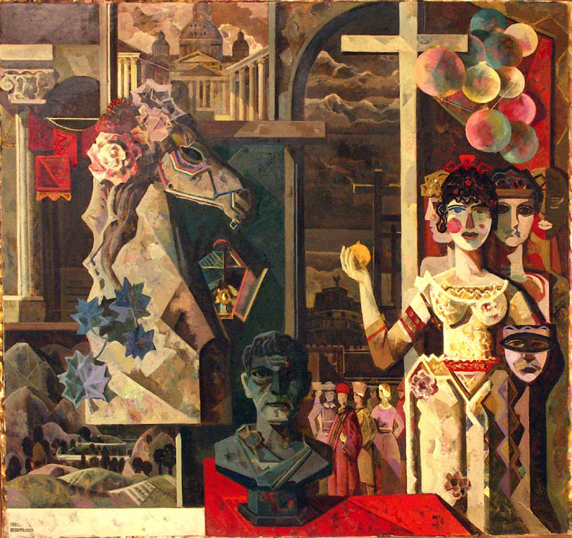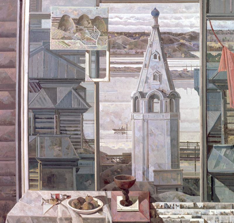Современная вологодская живопись также оказала определенное воздействие на творчество А.В.Пантелеева, в частности, на сложение его новой живописно-образной концепции, которую он реализовал в полотнах северной серии 1980-1989 годов. Это влияние сказалось на обращении к прежде не разрабатываемой автором теме северной деревни, которая является приоритетной для многих вологодских художников, в пристальном внимании мастера к жанру натюрморта, в изменении эмоциональной окраски произведений в сторону лирической интерпретации видимого мира, что проявилось в переработке композиционной и колористической структуры картин. На изменение цветового строя произведений Пантелеева оказала влияние живописная система Е.А.Соколова, его соседа по мастерской на улице Козленской. Интерес к изображению памятников древнерусской архитектуры был усилен воздействием больших серий гравюр Н.В.и Г.Н.Бурмагиных и В.А.Сергеева по мотивам старинного зодчества Вологды и Вологодской области. В целом, можно сказать, что влияние современного вологодского художественного мироощущения на творческий метод А.В.Пантелеева все же не было определяющим. Гораздо большее значение для него имело знакомство с древнерусской каменной архитектурой в виде культовых сооружений и деревянной - в виде северного деревенского строения жилого и хозяйственного назначения и вологодской городской жилой застройки. Не меньшее значение для развития мастера имело воздействие стенописи и иконописи Древней Руси, представленных в церкви Рождества Богородицы в Ферапонтовом монастыре фресками Дионисия и росписями ХVП века в Софийском соборе в Вологде, выполненными ярославскими мастерами, а также знакомство с обширными коллекциями икон ХIII-ХIХ веков в музеях Вологодской области.
