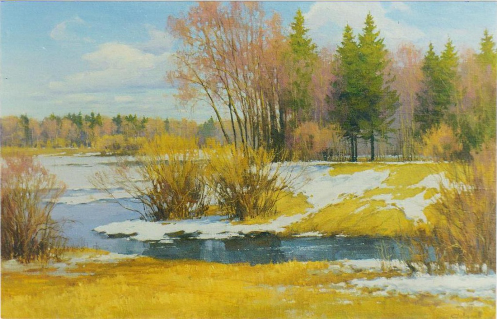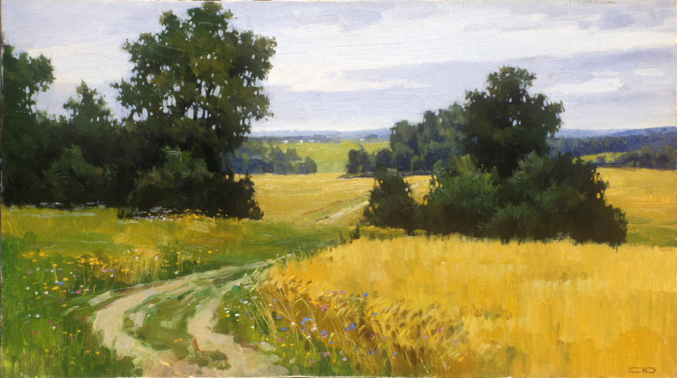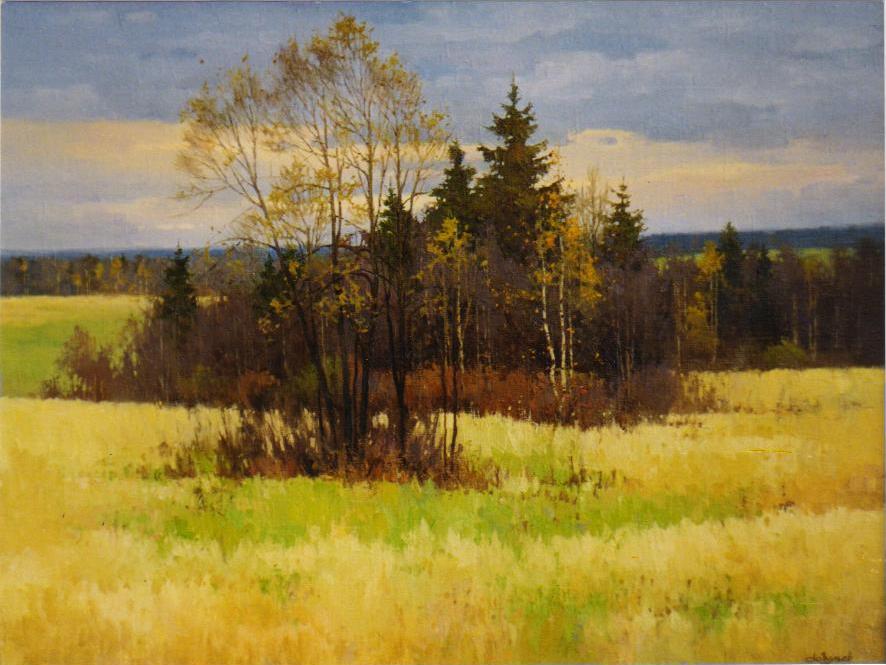 Художник работает в технике масляной живописи в жанре традиционного отечественного реалистического пейзажа.