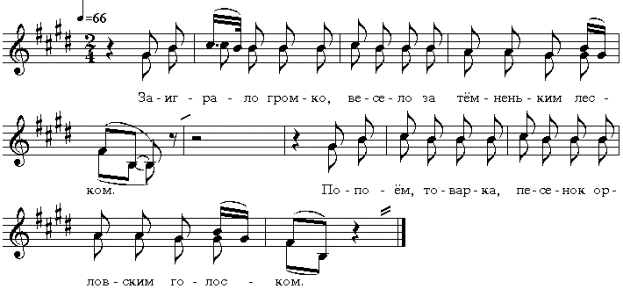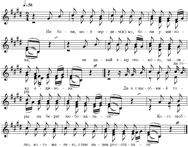 Пример 4а: частушки “на пологий голос” (д. Чернево, 02-12, 1999 г.)