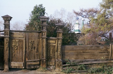 Ворота во двор. Задний план справа: Крестовозвиженская ц.