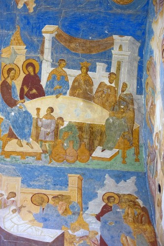 East slope, frescos. Top: “Marriage at Cana”; bottom: “Resurection of Jarus’ Daughter and the Healing of the Woman with an Issue of Blood”