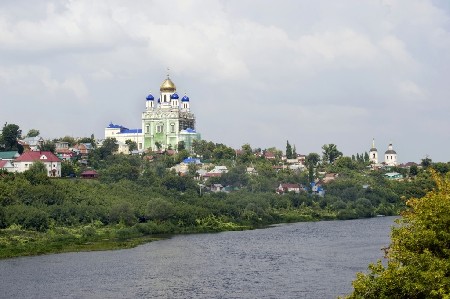 Вид через реку Быстрая Сосна. Справа: Введенская ц.