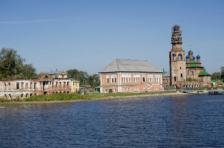 Слева-направо: дом Абамелек-Лазарева; контора сользавода; Строгановские палаты; соборная колокольня и торговые ряды; Преображенский собор, руины часовни Спаса Убруса. Вид с р. Камы