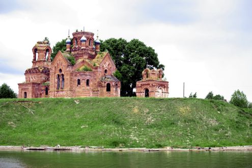 Слева: склеп купцов Кирьяновых. Вид с р. Камы